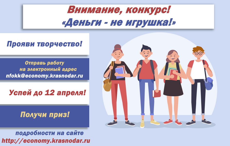 С 11 марта 2019 года начат прием заявок на участие в конкурсе «Деньги – не игрушка». Конкурс проводит министерство экономики Краснодарского края.