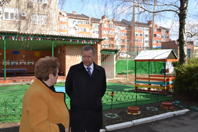 Продолжил свой рабочий день парламентарий посетив детский сад № 23 города Ейска. Осмотрев фасад здания и побывав в групповых и спальных помещениях, депутат обратил особое внимание на состояние оконных блоков и полов в детском саду. По итогам визита депутата убедился, что принятое в январе текущего года решение, о выделении денежных средств на замену окон, своевременное. По вопросу финансирования работ по ремонту полов в детском саду депутат намерен провести рабочую встречу с главой муниципалитета и курирующим его заместителем с целью выработки оптимального решения.