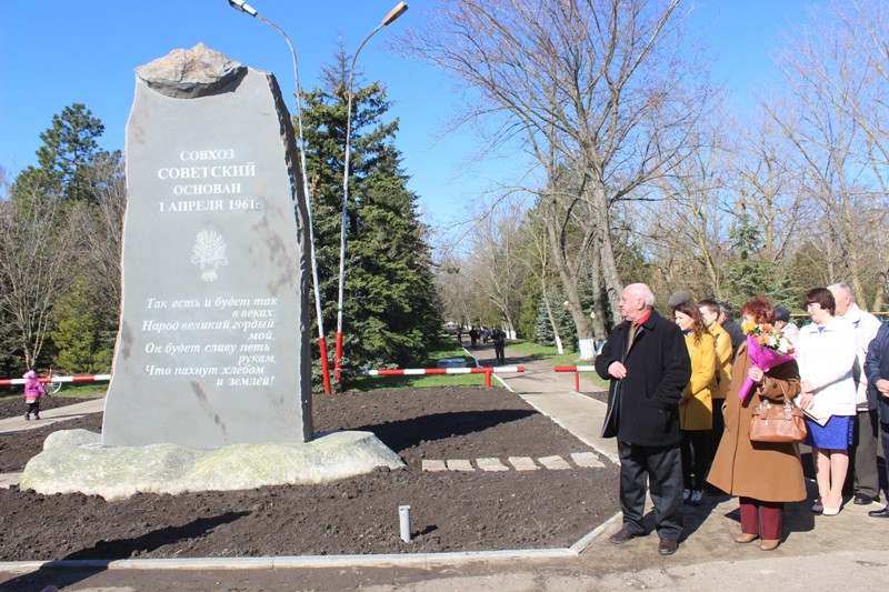 - одно из самых крупных градообразующих предприятий района. В честь основателей совхоза и тех, кто трудился во имя его процветания, создавал его будущее, была торжественно открыта стела. Поздравить юбиляров приехало руководство района, ветераны сельского хозяйства, депутат ЗСК Виктор Дедешко. Несмотря на экономические сложности, «Советское» много лет остается лидером агропромышленного комплекса района, в хозяйстве традиционно высокие урожаи зерновых, сохранено и развивается животноводство. Это лучше любых слов говорит о том, что здесь работают мастера своего дела. Все выступающие подчеркнули главную составляющую успеха совхоза «Советский» - секрет долголетия хозяйства в том, что за полвека в нем было всего два руководителя. Поднимал совхоз в трудные послевоенные годы фронтовик, орденоносец, настоящий самородок, душой болеющий за порученное дело Александр Данилович Беслик. В 76-м «эстафету» от него принял нынешний директор предприятия Валерий Иванович Човган – рачительный хозяин и дальновидный руководитель, беззаветно любящий свою малую Родину.