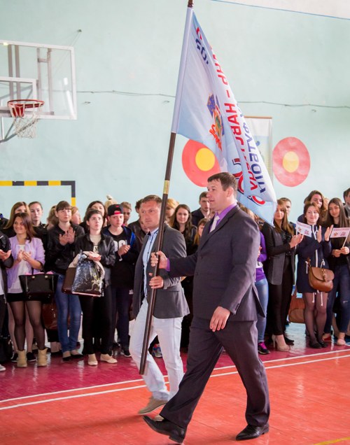 Торжественная церемония передачи флага прошла на линейке в ЕПК, посвященной предстоящему чемпионату мира по футболу 2018 года в г. Сочи. Начальник отдела по физической культуре и спорту администрации МО Ейский район Анатолий Мирошников вручил флаг студентам отделения физической культуры. На празднике присутствовали почетные гости города, студенты колледжа, преподаватели и учащиеся базовой начальной школы № 16.