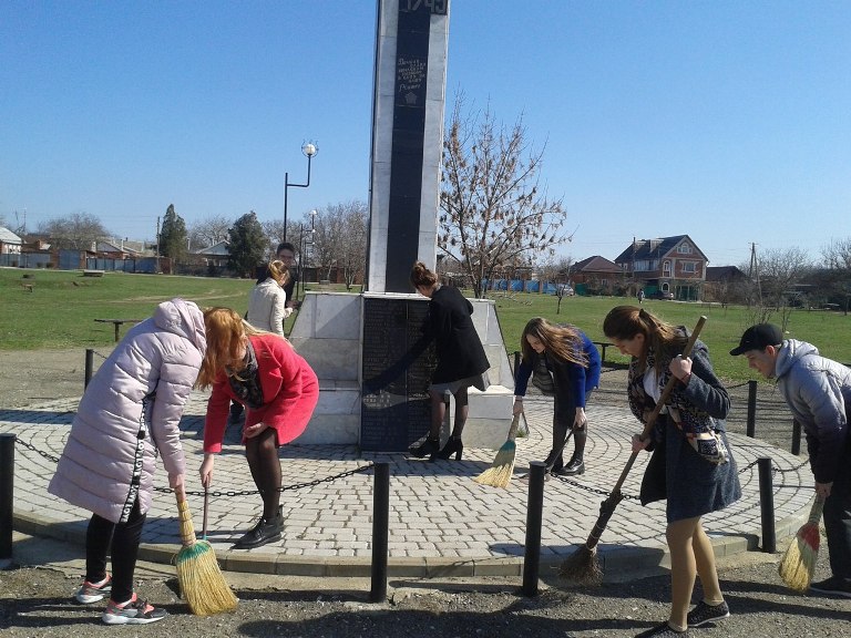 В рамках дня единых действий по благоустройству памятных мест, аллей славы и мест захоронений ветеранов Великой Отечественной войны молодежь Ейского района навела санитарный порядок на мемориалах, расположенных на территории муниципалитета.