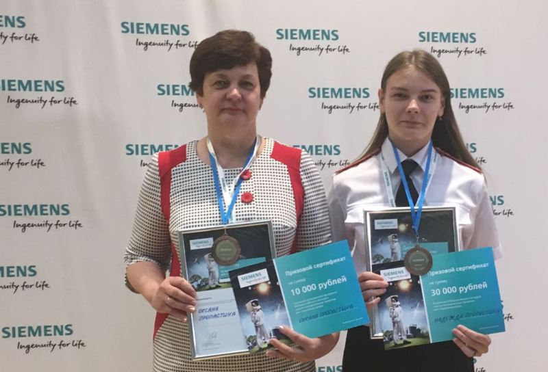 Награды финалистам вручал президент «Сименс» в России - Дитрих Мёллер. Надежда и ее научный руководитель вошли в пятерку лучших и были награждены дипломами и медалями XII Всероссийского конкурса, а также сертификатами на получение денежных премий. Кроме того им были вручены памятные подарки от национального исследовательского университета и сертификаты на скидку по программам London school of business and finance.
