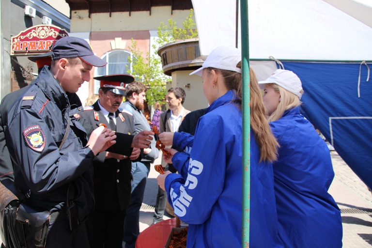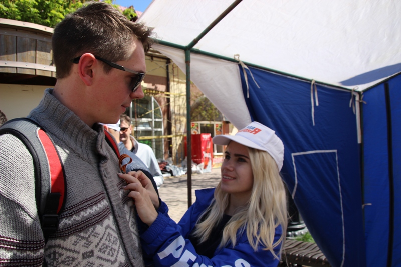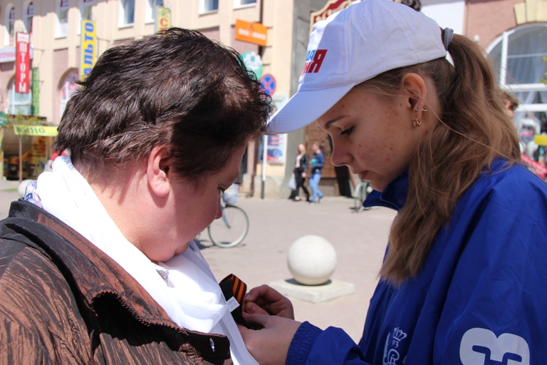 С сегодняшнего дня представители управления по делам молодежи и волонтеры на улицах города и сельских поселений начали раздавать Георгиевскую ленту всем желающим. В г.Ейске их можно встретить на пересечении ул. Свердлова и ул.Энгельса с 12 до 14 часов вплоть до 8 мая. А 9 мая площадок, где можно получить Георгиевскую ленту, будет две: на площади Революции и в парке им. Ивана Поддубного.
