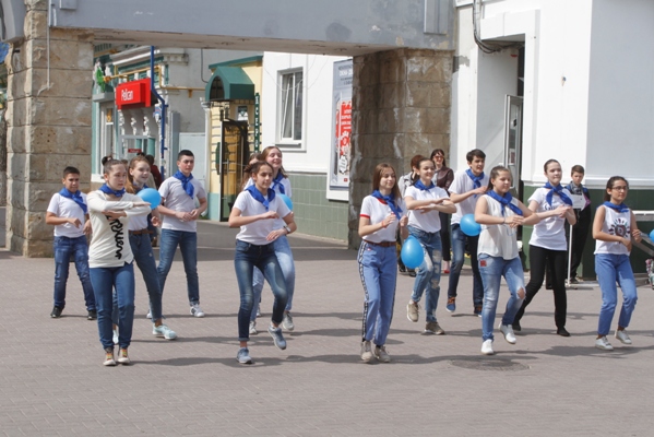 Флешмоб был организован в самом центре города Ейска, где подростки раздавали прохожим памятки и голубей, символизирующих мир и доброту на земле, повязывали синие ленты на запястье, как символ акции.