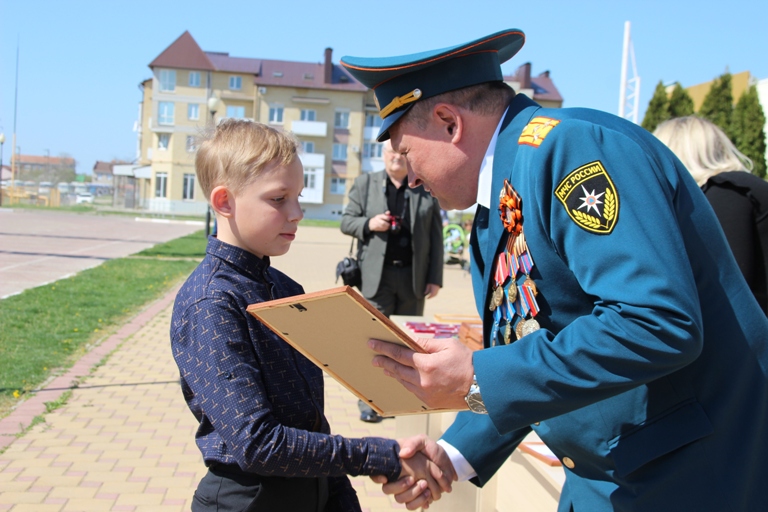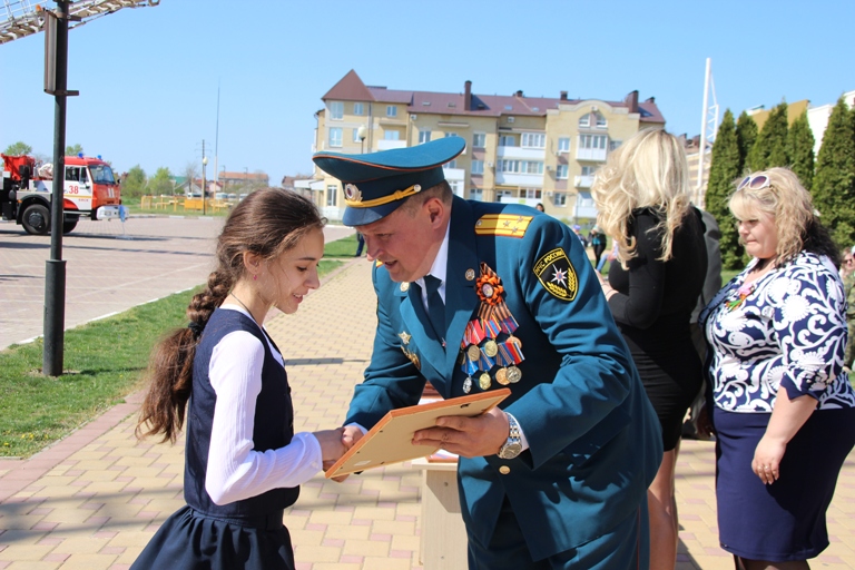 Добрые пожелания звучали в этот день и от депутата Совета МО Ейский район Виктора Дедешко. Начальник отряда полковник Сергей Коваленко озвучил итоги муниципального этапа Всероссийского героико-патриотического фестиваля детского и юношеского творчества «Звезда спасения», в котором принимали участие школьники Ейского района. Победителям и призерам творческого состязания были вручены заслуженные награды.
