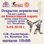 5 мая в 10 часов в спортивном комплексе «Солнечный» состоится открытое первенство Ейского района по киокусинкай карате имени Героя России, генерала армии В.С. Михайлова. Планируется, что участниками соревнований станут более 250 спортсменов из г.Армавира, г.Курганинска, г.Краснодара, г.Новороссийска, г.Новокубанска, г.Анапы, Ростовской области и республики Крым.