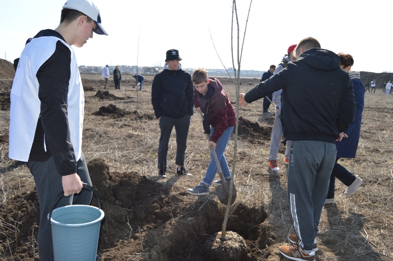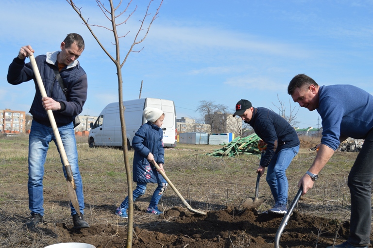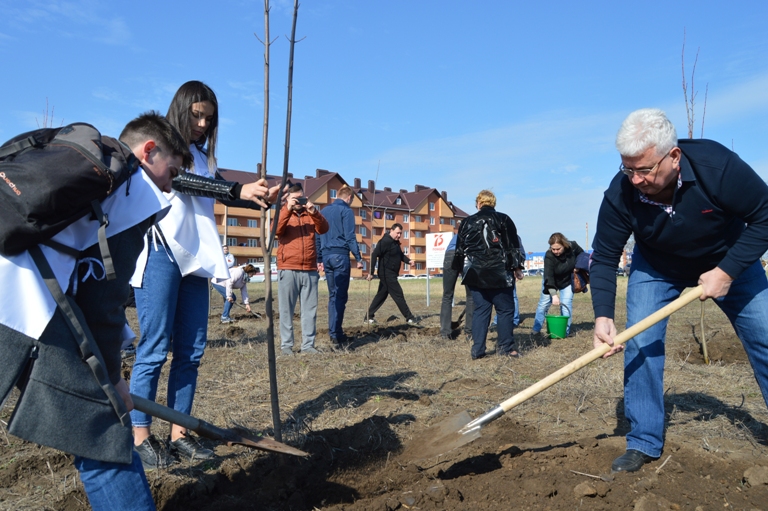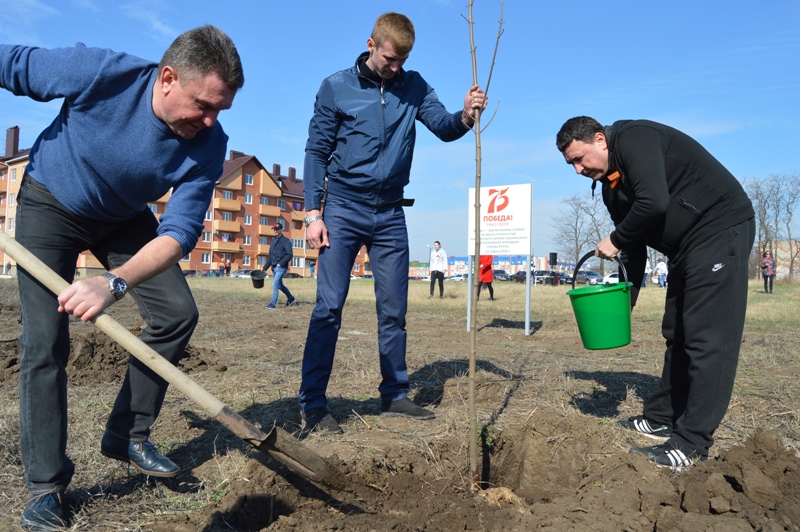 75 деревьев для посадки были закуплены центром городского хозяйства, остальные клены и липы принесли с собой представители управления по делам молодежи администрации МО Ейский район, казаки и обычные жители города, которые приняли активное участие в патриотической акции. Вместе со всеми сажали деревья и главы района и города Виктор Ляхов и Валерий Кульков, их заместители, руководители структурных подразделений, представители различных предприятий и учреждений. Бок о бок с ними старательно трудились и дети, которые вместе с родителями пришли поучаствовать в акции. Были здесь и многодетные семьи, пока одни мирно спали в коляске, старшие сестренки успешно справлялись с поставленной задачей.