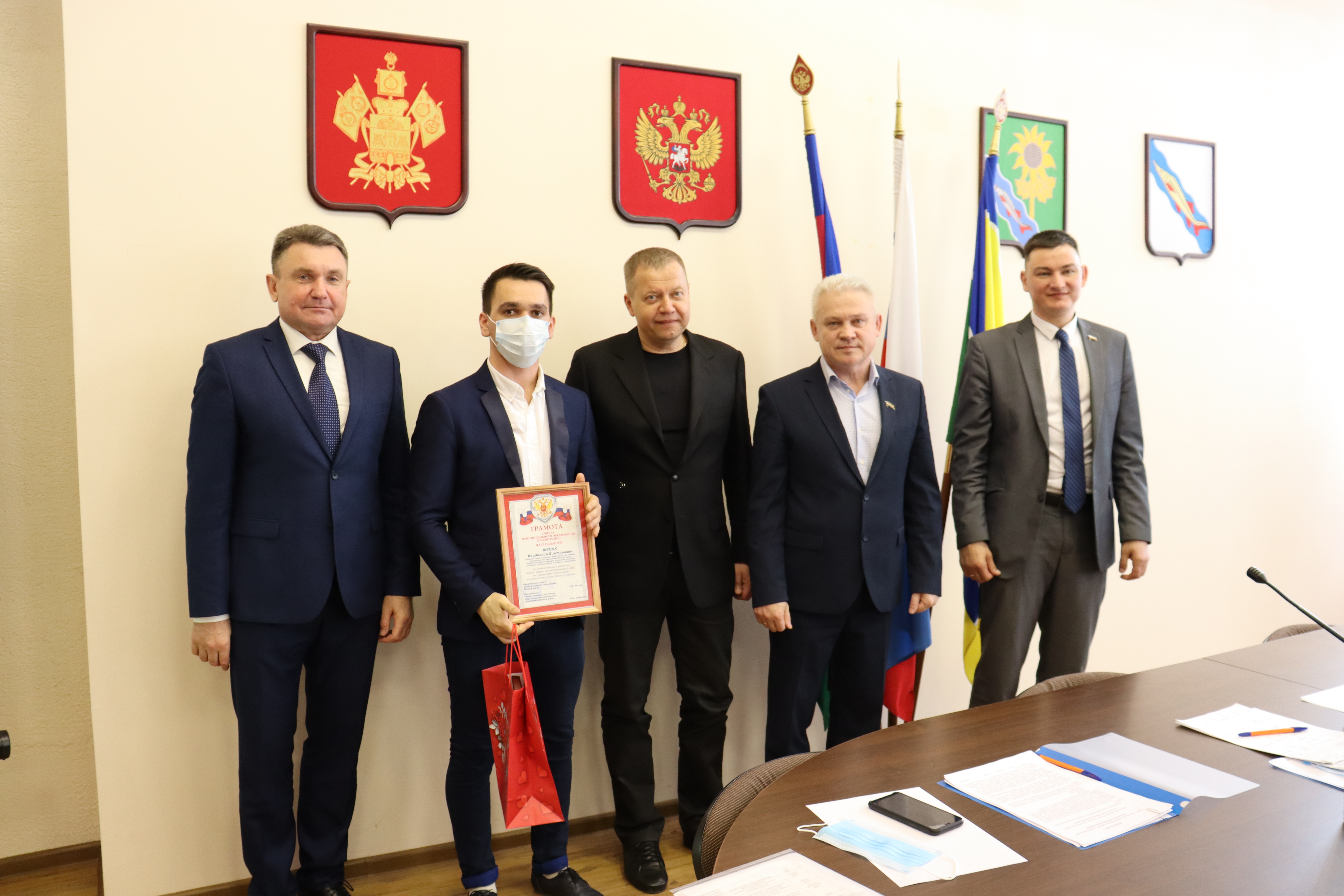 В ходе заседания Совета молодых депутатов, прошло торжественное награждение. По результатам работы за 2020 год за личный вклад в развитие малых форм хозяйствования и ЛПХ на территории сельских поселений Ейского района грамотами Совета молодых депутатов награждены специалисты: