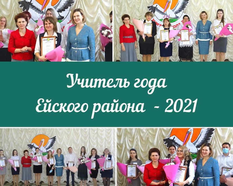 С 1 по 12 марта 2021 года в Ейском районе прошел конкурс «Учитель года Ейского района-2021», в котором приняли участие 26 педагогов из 15 общеобразовательных организаций Ейского района. Педагоги соревновались в эрудиции и профессиональном мастерстве в четырех номинациях: «Учитель года Ейского района - 2021» (основная номинация), «Учитель года Ейского района - 2021 по кубановедению», «Учитель года Ейского района - 2021 по основам православной культуры», «Педагогический дебют».
