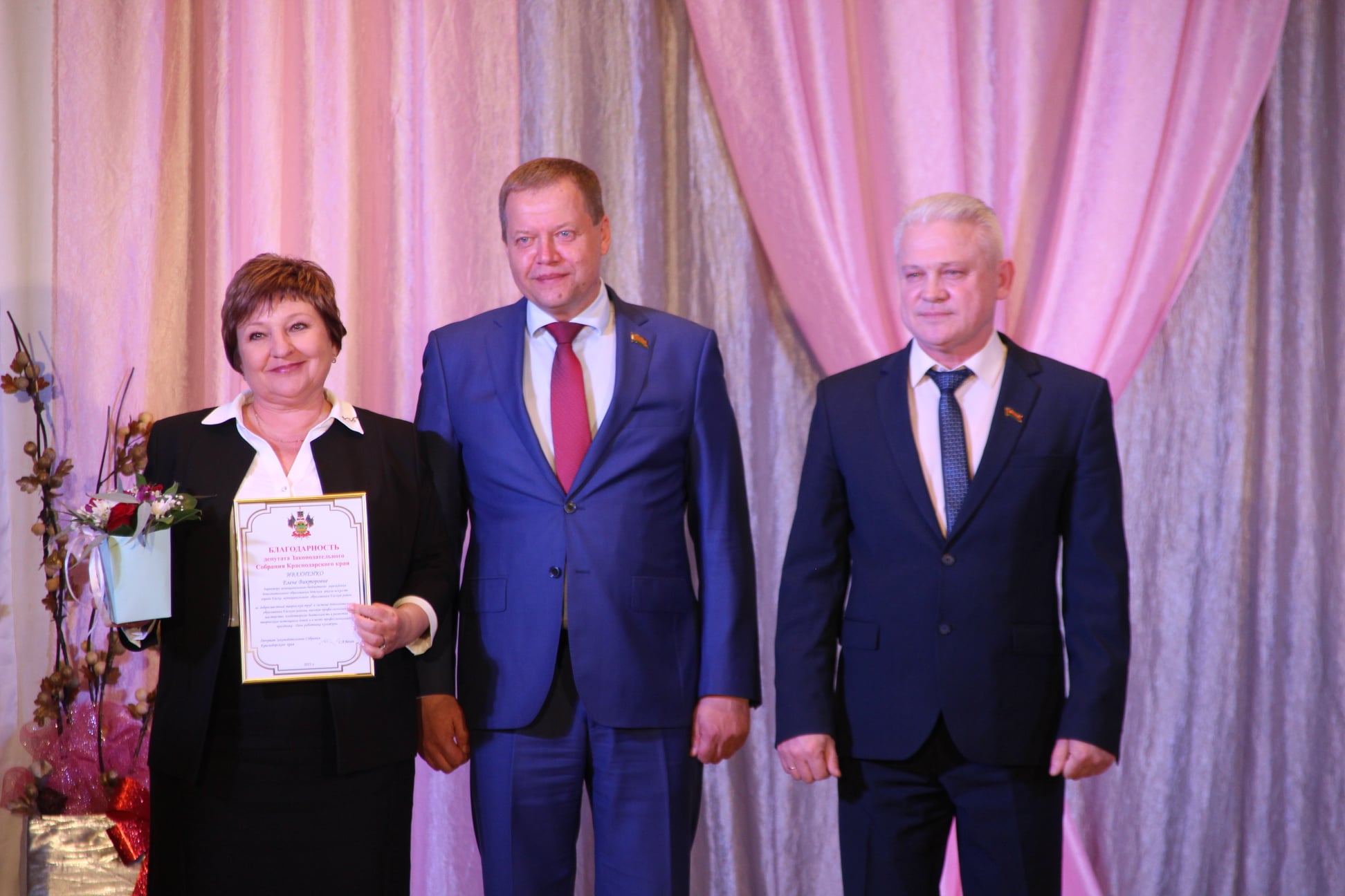 Слова поздравлений работникам культуры адресовали депутат ЗСК Сергей Белан и председатель Совета МО Ейский район Олег Вяткин. Благодарственными грамотами были отмечены работники городских и муниципальных школ искусств, а также центральной районной библиотеки.