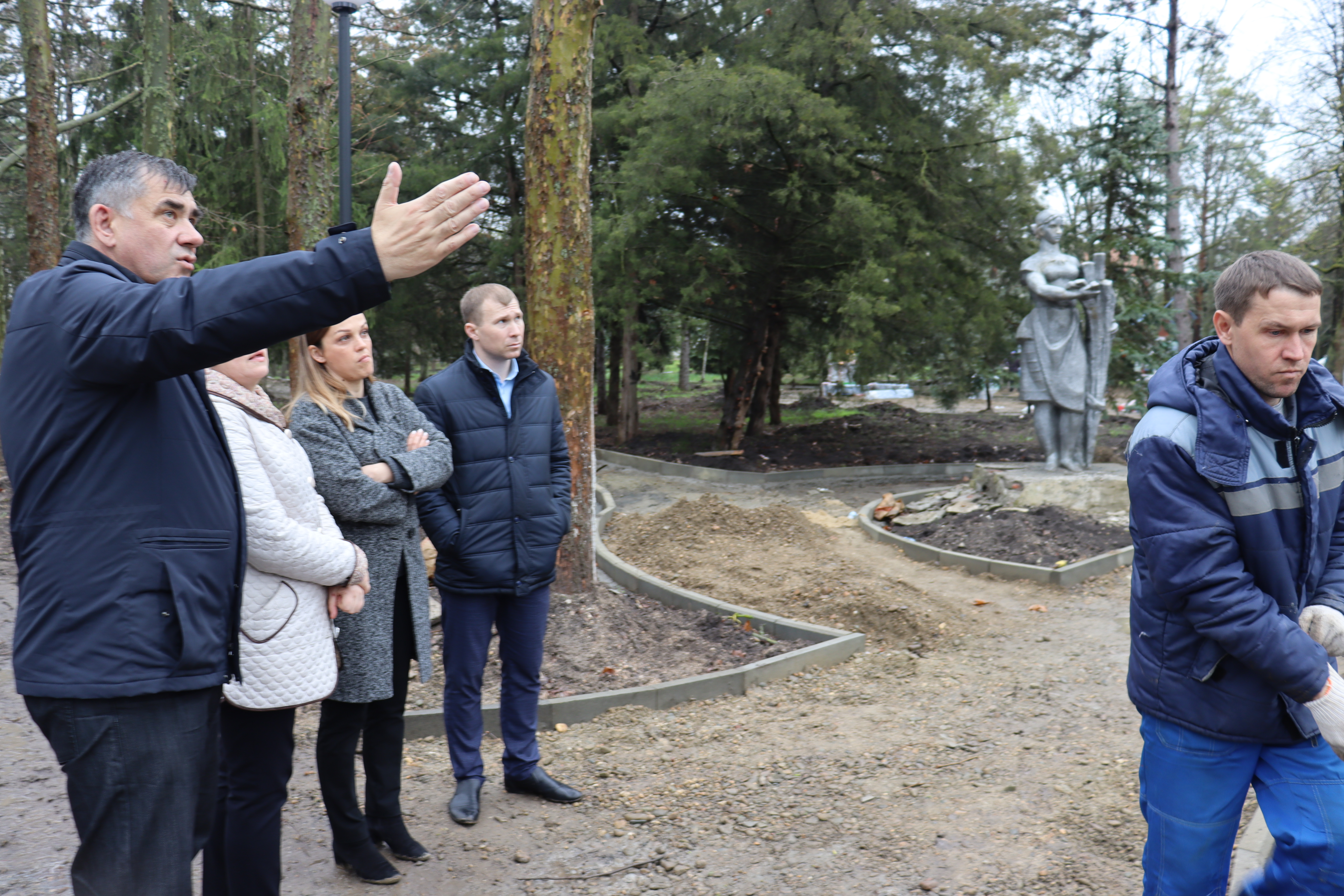 Присоединилась к осмотру и глава Трудового сельского поселения Елена Симонихина. Она поделилась с присутствующими ходом работ по реконструкции парка и теми благотворительными проектами, выполнение которых взяла на себя ООО «Агрофирма «Волготрансгаз-Ейск» филиал СХП «Советское». Ими уже завершается обновление мемориала «Скорбящий солдат». Современным отделочным материалом облицована стена, обновлены ступеньки. Демонтирована старая тротуарная плитка, проводится укладка новой. Вся территория вокруг памятного места обустраивается в едином стиле с пешеходными дорожками парка.