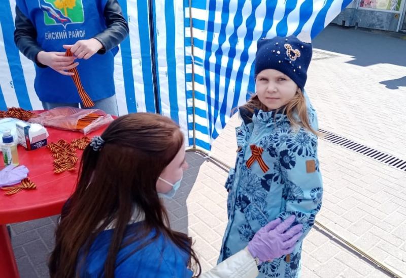 В преддверии Дня Победы волонтеры отдела по делам молодежи нашего муниципалитета начали раздавать георгиевские ленточки на улицах города и населенных пунктов. В Ейском районе их планируется раздать порядка 20 тысяч.