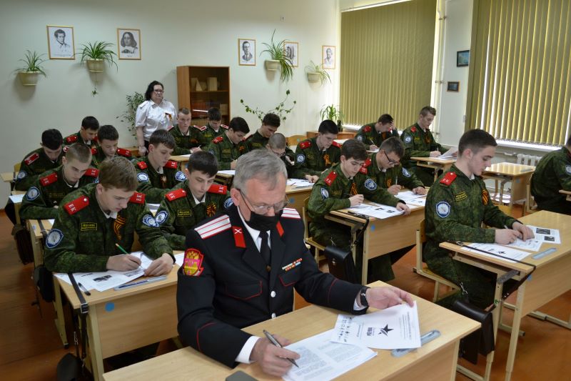 Диктант Победы 29 апреля написали в Ейском казачьем кадетском корпусе. В исторической акции приняли участие жители более 80 стран мира, в том числе почти сорок тысяч жителей Кубани. Накануне в Ейский корпус прибыл заместитель главы района, атаман Ейского районного казачьего общества казачий полковник Юрий Ковров, который вместе с кадетами и сотрудниками корпуса принял участие в Диктанте Победы. Всего в акции принял участие 121 человек.