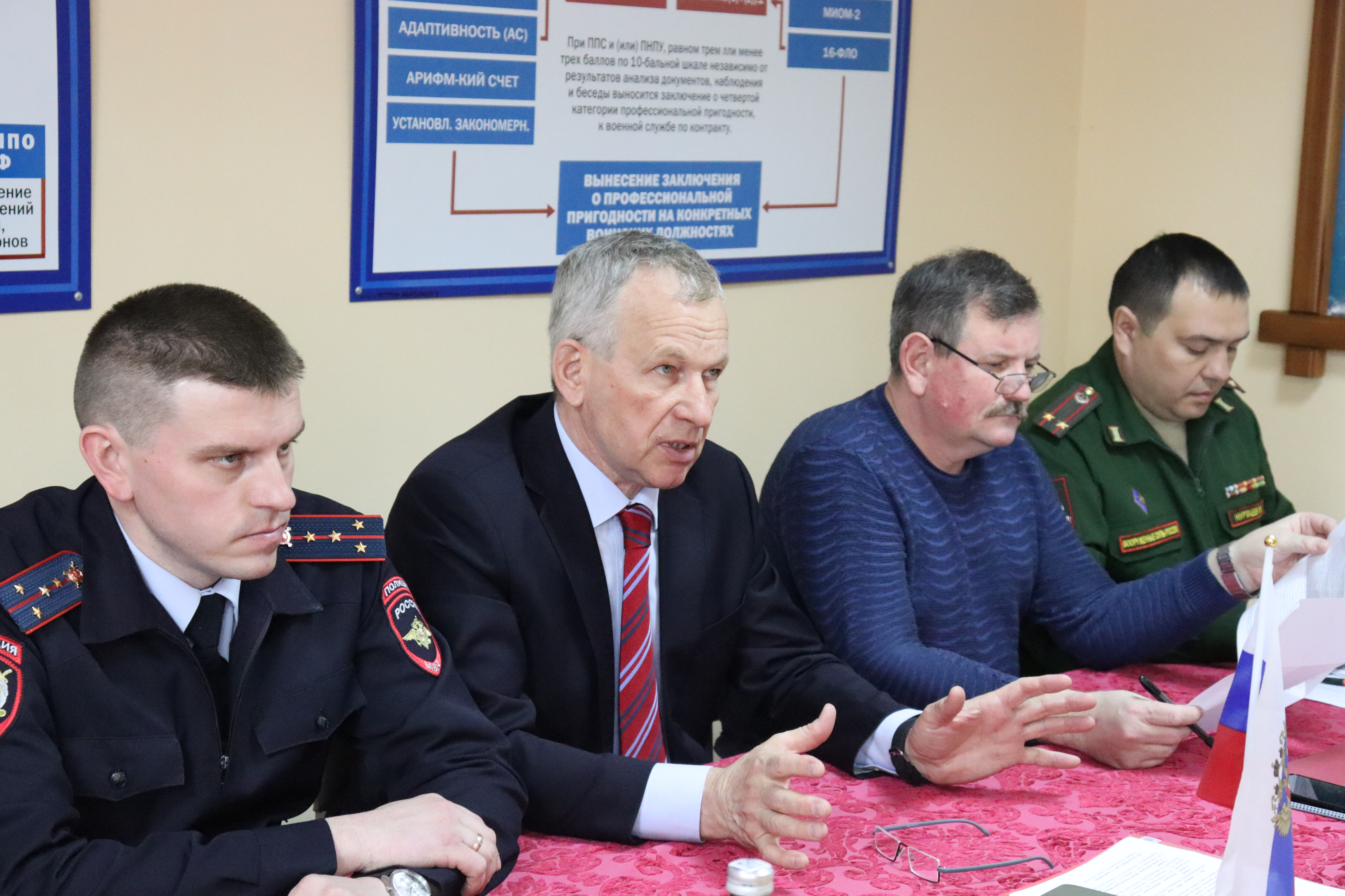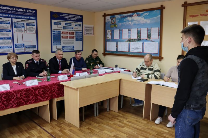 Сегодня в военный комиссариат было вызвано 17 человек. Члены комиссии внимательно изучали их личные дела. Ребятам задали ряд вопросов, напомнили о возможных перспективах, которые открываются перед парнями при прохождении военной службы по призыву. Решения принимали коллегиально в рамках правового поля.