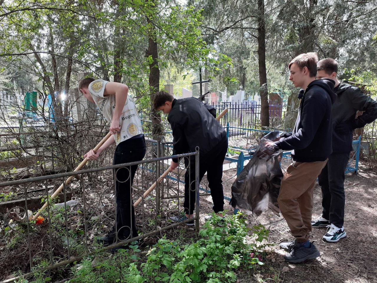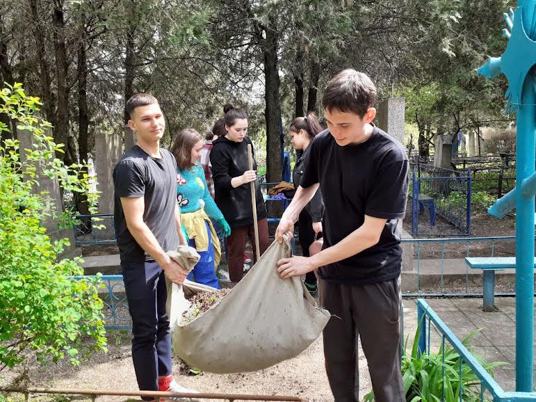 В канун празднования 77-летия Победы в Великой Отечественной войне студенты Ейского полипрофильного колледжа привели в порядок могилы ветеранов на городском кладбище, поддерживая акцию «Город помнит своих героев».