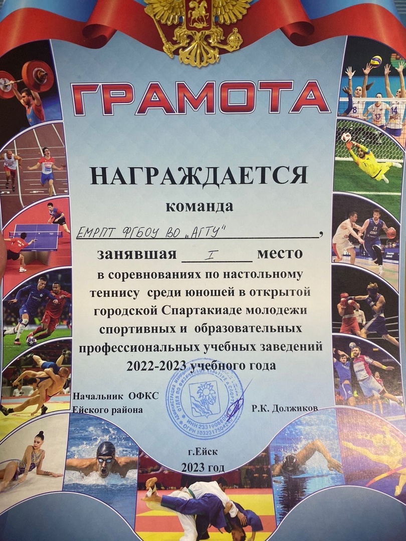 Студенты ЕМРПТ ФГБОУ ВО \"АГТУ\" победители соревнований по настольному теннису