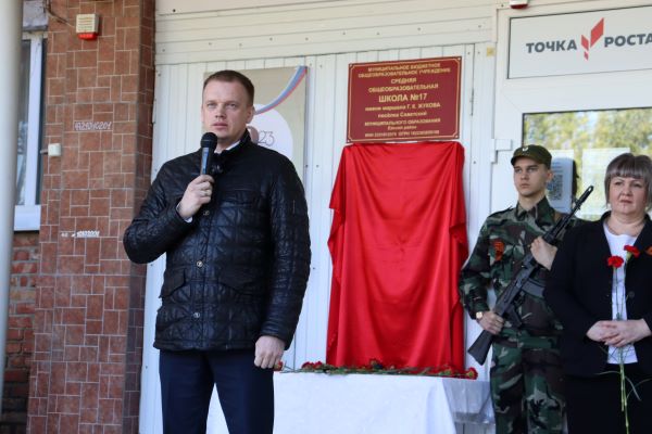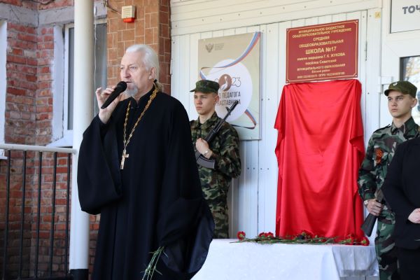 Сегодня в СОШ №17 им. маршала Г.К.Жукова п. Советского Ейского района открыта памятная мемориальная доска выпускнику школы Федору Николаевичу Дудченко.