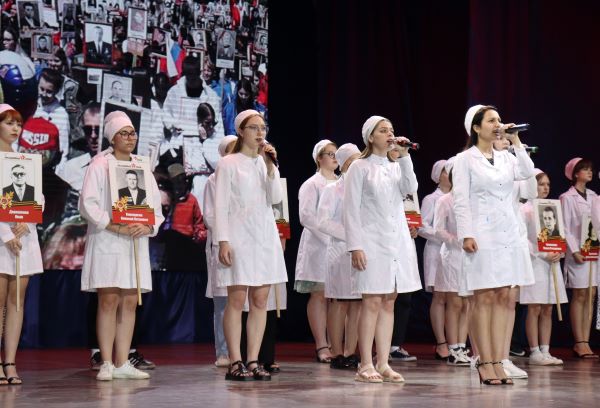 В этот день была масса удивительных творческих подарков. Вместе с артистами на сцену выходили дети присутствующих в зале виновников торжества. Пели и сами медики, удивляя всех многогранностью своих талантов. Изумлением и бурными аплодисментами заканчивался каждый номер. Стоя почтили память всех медицинских сотрудников, погибших при исполнении своих должностных обязанностей под песню «Встанем» в исполнении студентов медицинского колледжа.