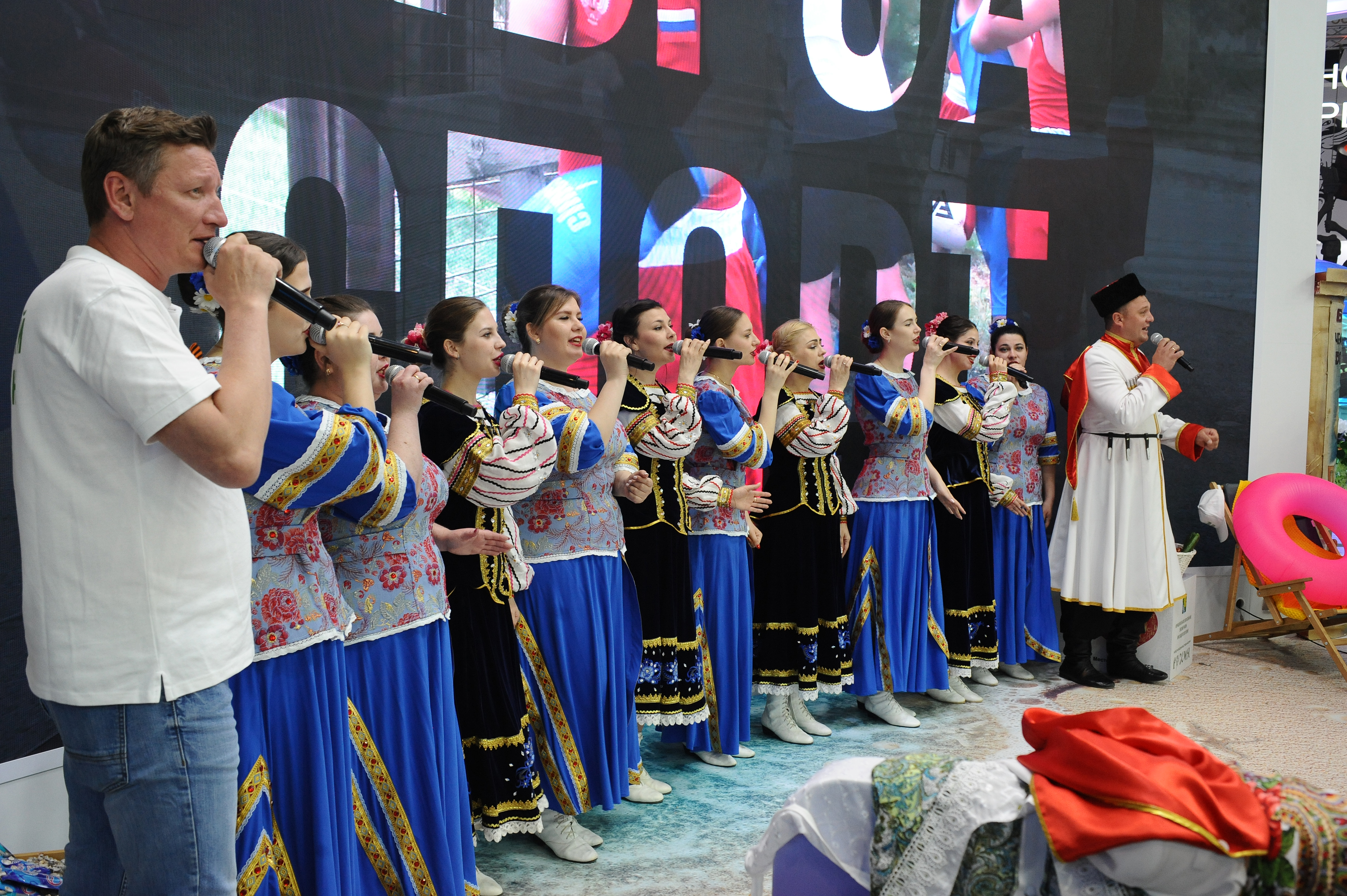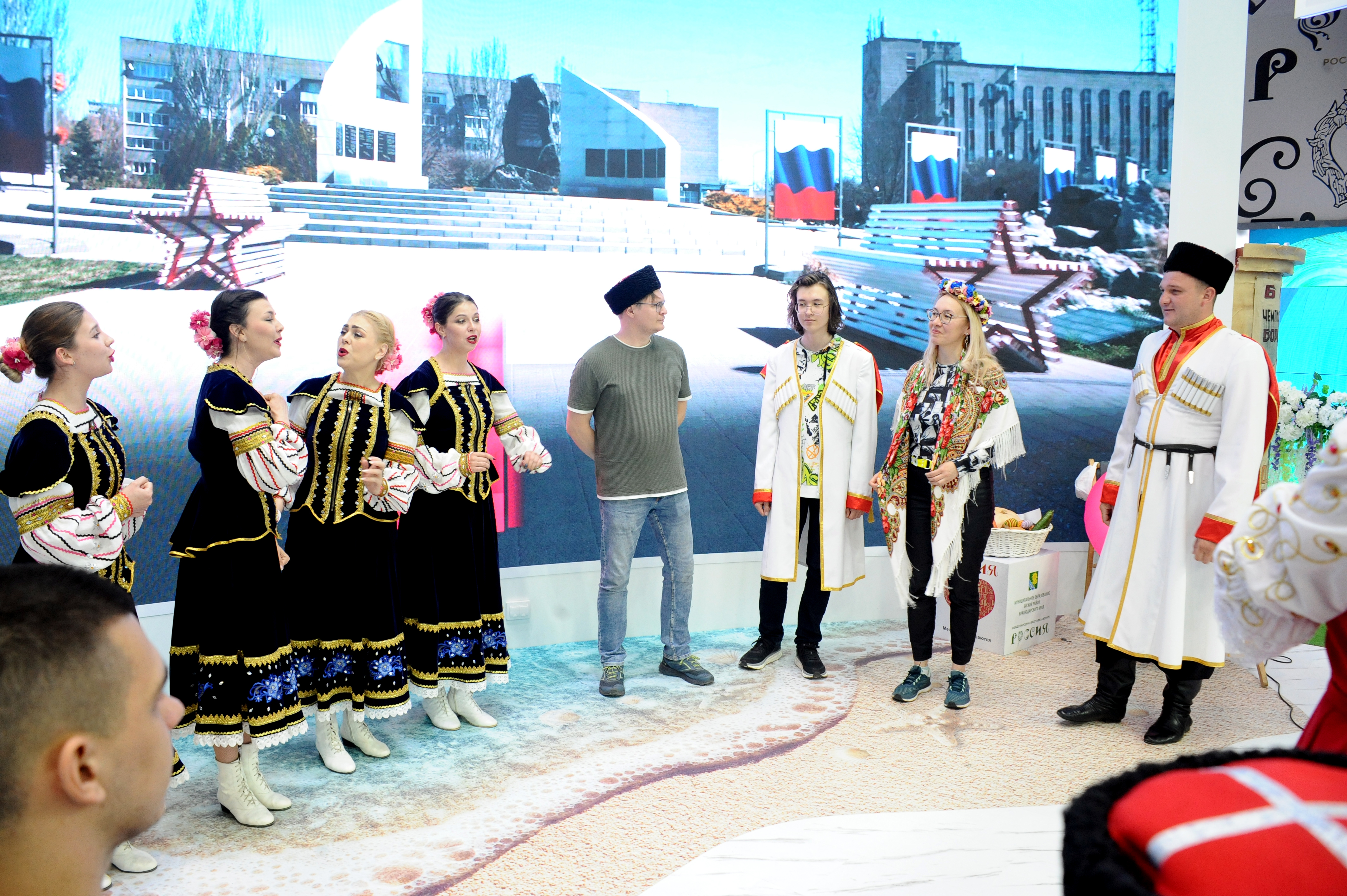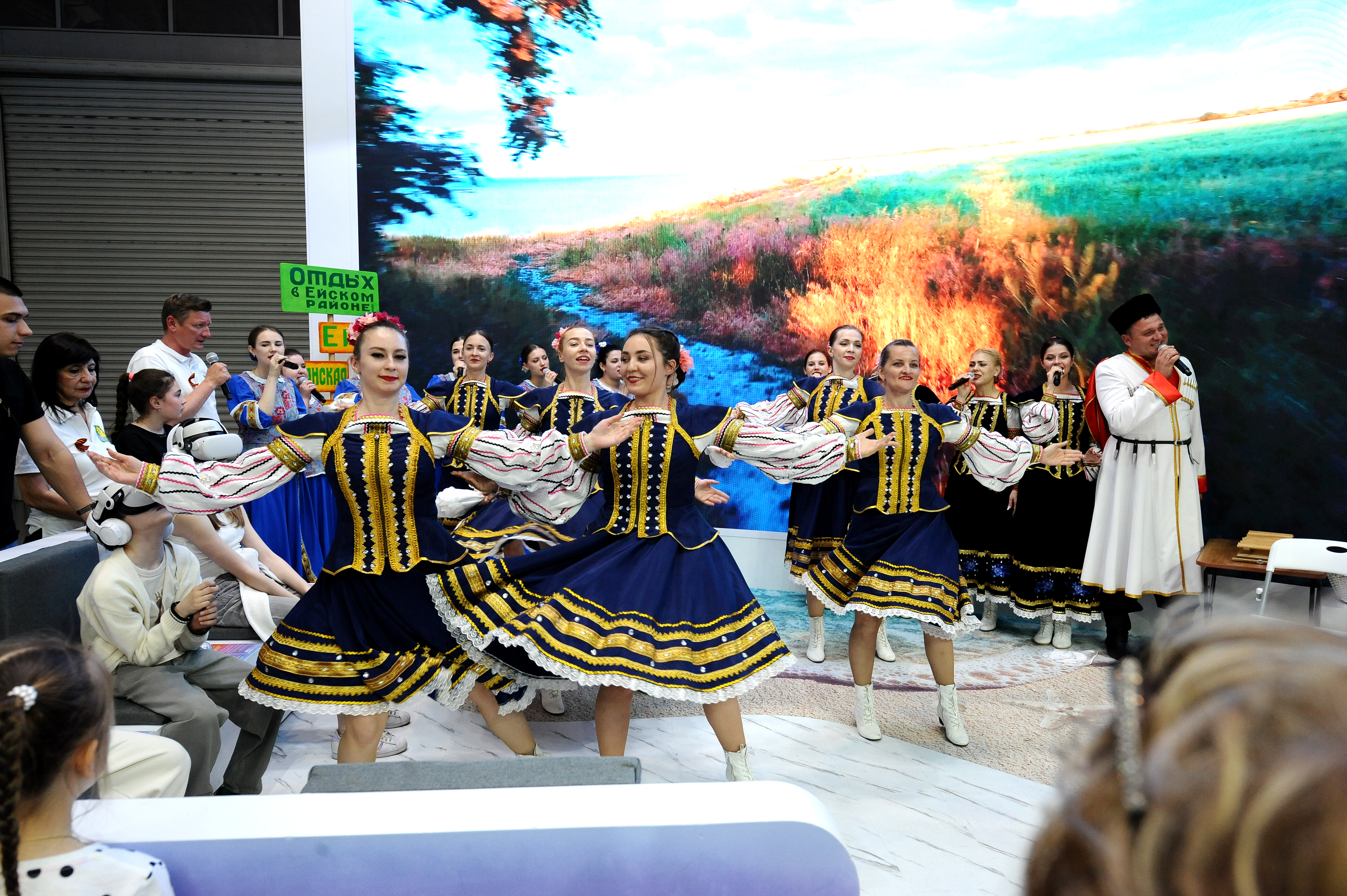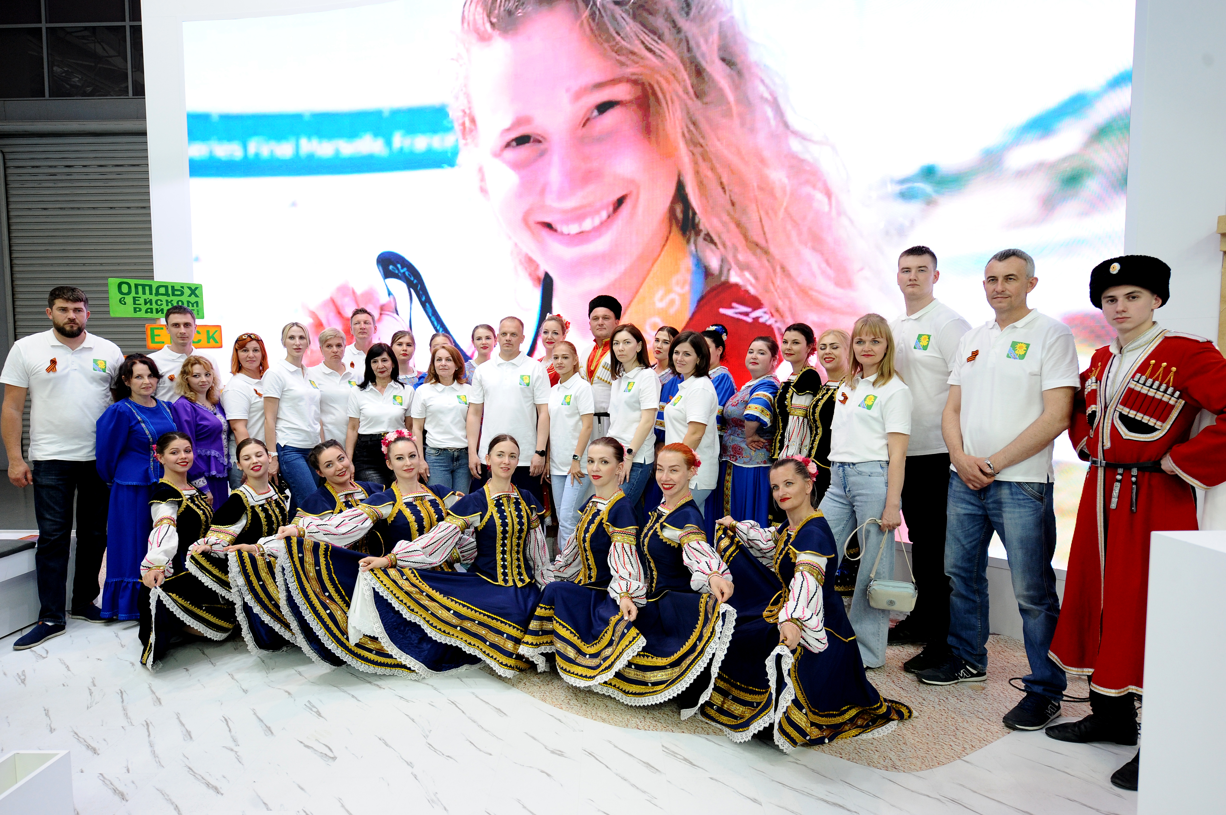 Творческий потенциал культуры Ейского района на выставке в Москве представили : народный вокальный коллектив «Мирослава», народный вокальный коллектив «Русь», народный вокально- хореографический коллектив «Фортуна»: Выступление ейских артистов и мастер- классы народного объединения мастеров «Дар» вызывает живой, неподдельный интерес гостей выставки.