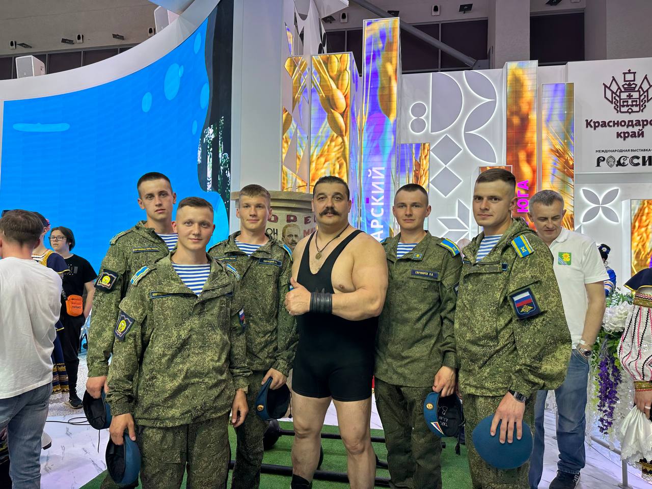 Потрясающая атмосфера царит на выставке- экспозиции Ейского района. Неизменный аншлаг вызывает и выступление Дмитрия Халаджи. Человек- легенда,спортсмен–тяжелоатлет, актер, силач, попавший в Книгу рекордов Гиннесса, рекордсмен по поднятию тяжестей, чемпион мира по борьбе на поясах! Сейчас на счету Халаджи больше 60 рекордов.