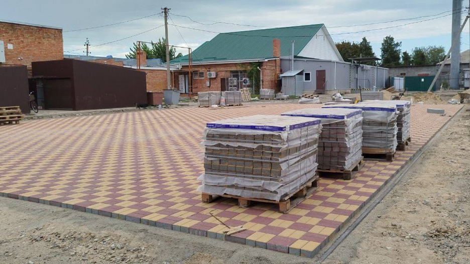 Продолжаются работы по реконструкции Ярмарочной площади в с. Александровка Ейского района.