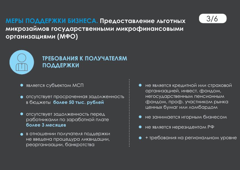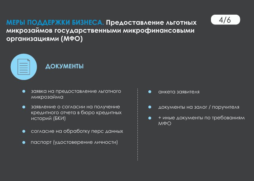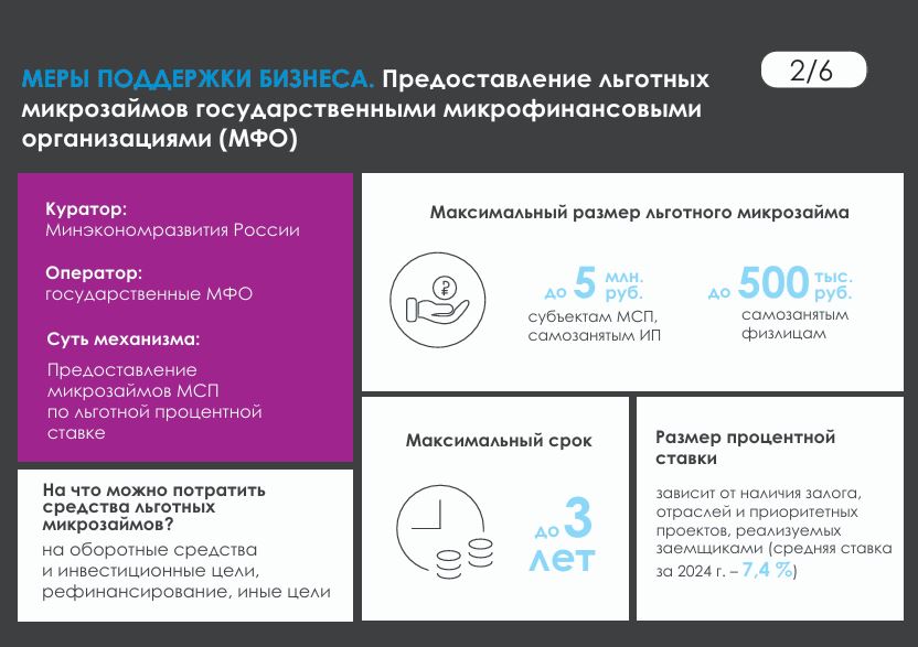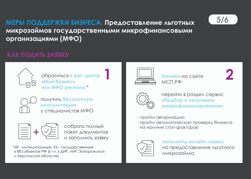 Предоставление льготных микрозаймов государственными микрофинансовыми организациями.