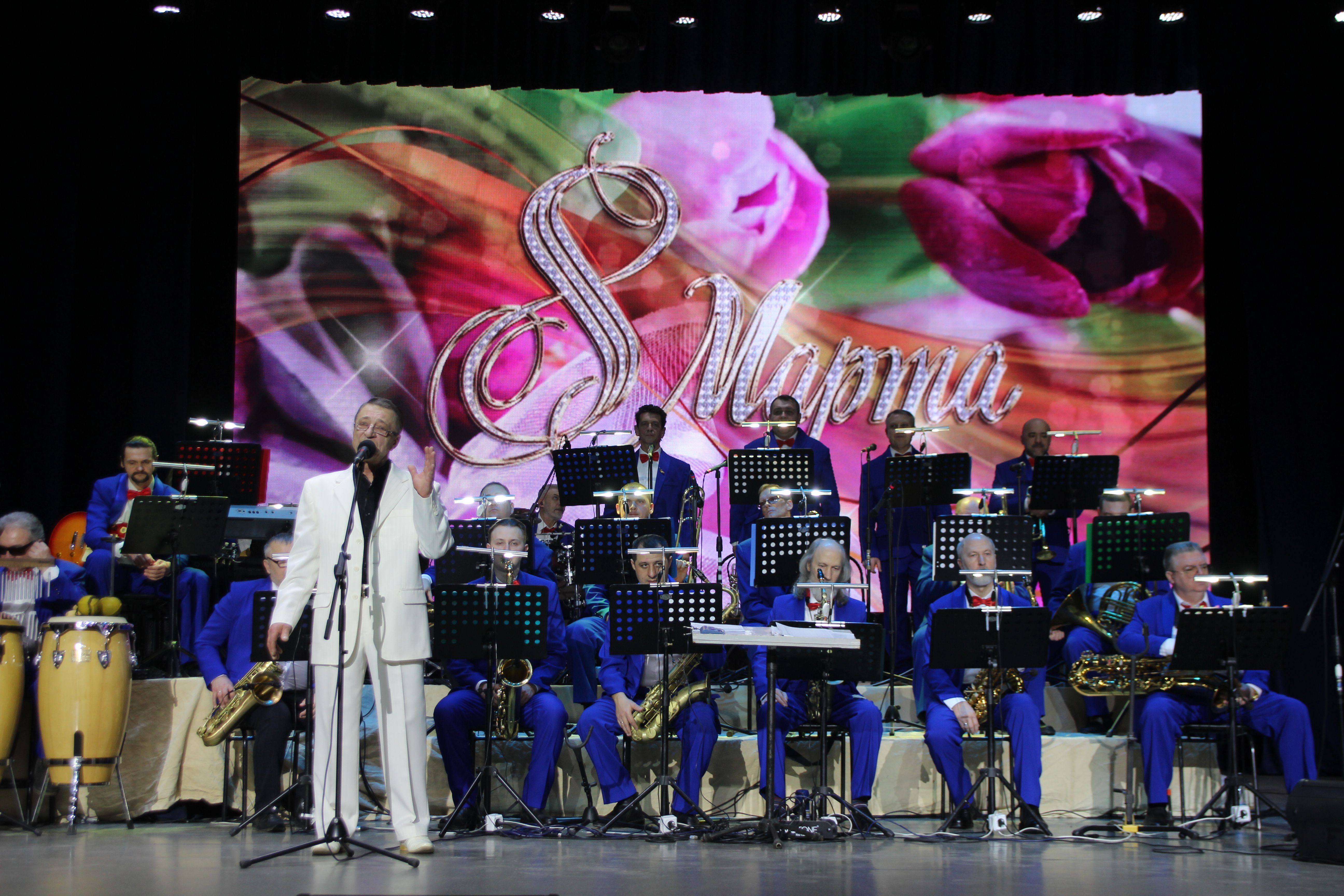 После этого юноши с корзинами цветов спустились в зал, преподнося женщинам тюльпаны. Праздник продолжился новой сольной программой джазового оркестра «Ейск биг-бэнд» под руководством заслуженного работника культуры Кубани Александра Ивахненко.