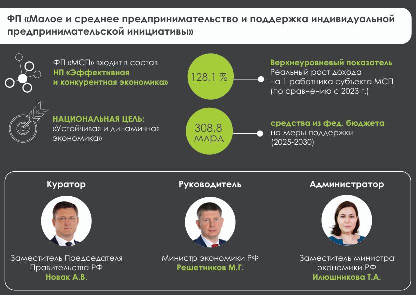 ФП "Малое и среднее предпринимательство и поддержка индивидуальной предпринимательской инициативы входит в состав НП "Эффективная и конкурентная экономика"