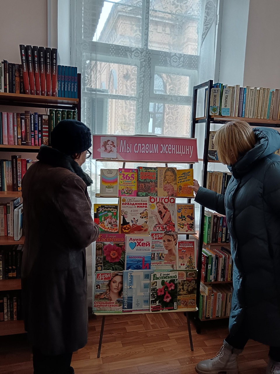 Обзор книжно-иллюстративной выставки "Мы славим женщину", приуроченный к Международному дню 8 марта подготовили сотрудники библиотеки.