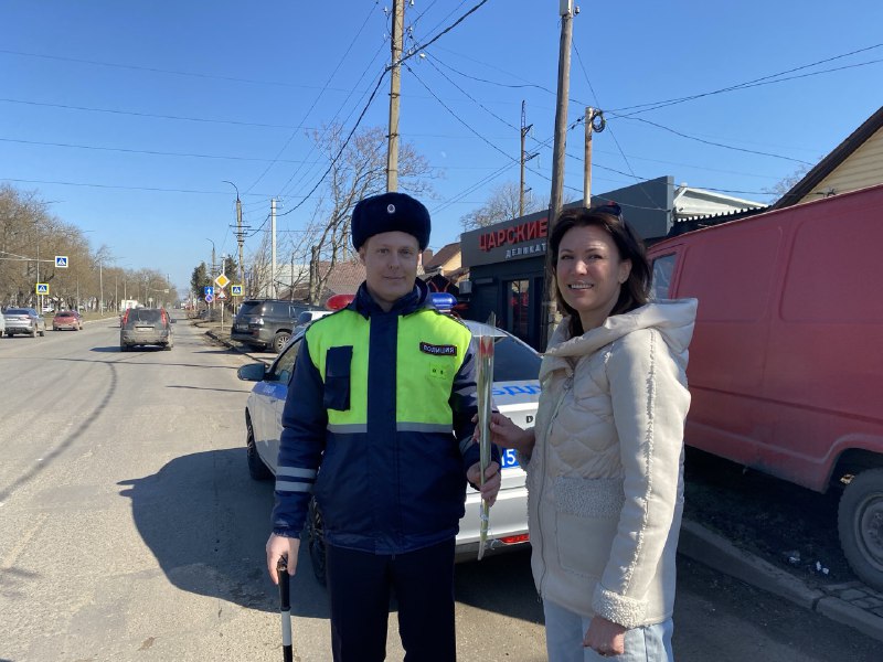 На одной из самых оживленных улиц города сотрудники Госавтоинспекции останавливали женщин-водителей, дарили цветы, желали весеннего настроения, любви и благополучия.