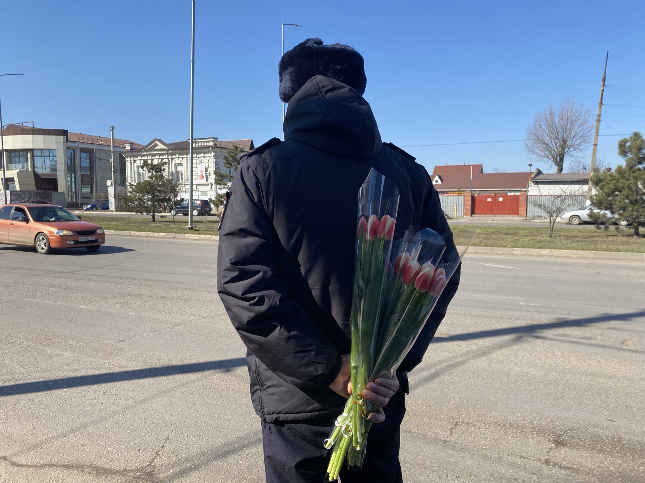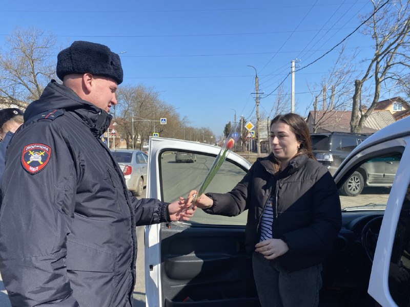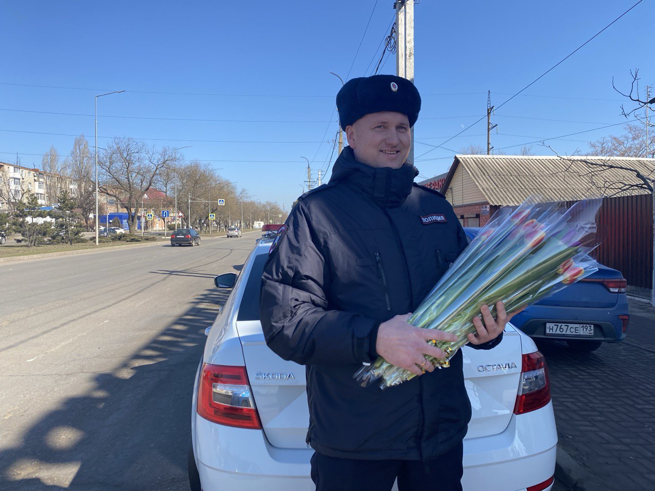 Госавтоинспекторы и общественники Ейского района провели акцию «Цветы для автоледи»