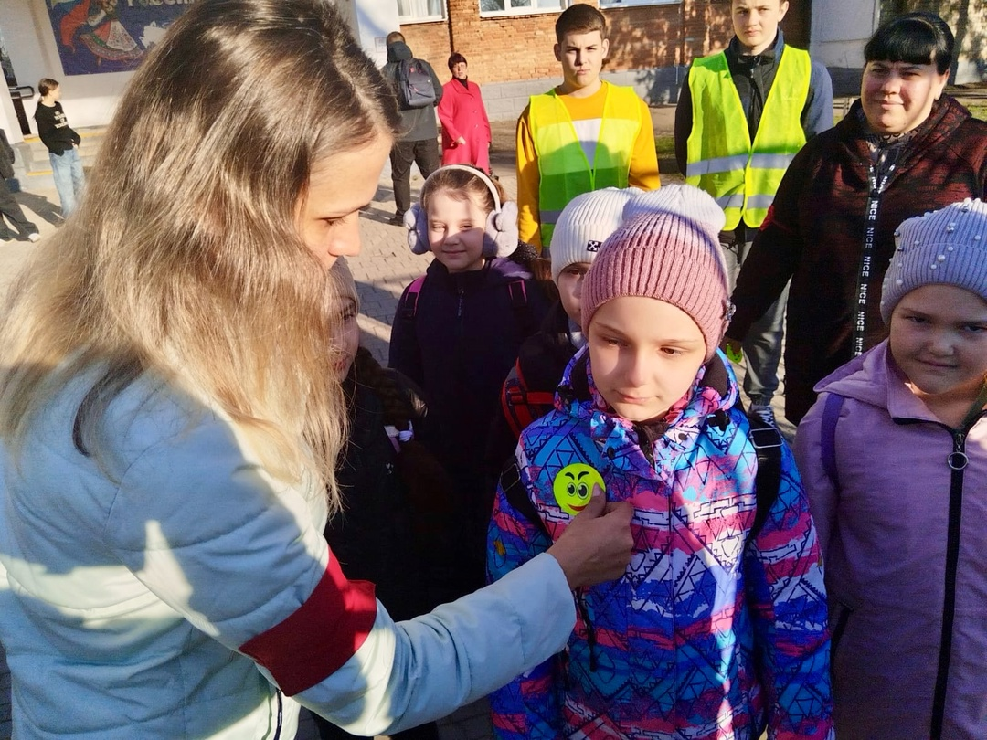 Цель которой напомнить родителям и детям о необходимости светоотражающих элементов на одежде детей. Родительский патруль вручал родителям буклеты-памятки о фликерах, правилах их размещения на одежде, а дети получили фликеры- наклейки, чтобы быть заметней в тёмное время суток. ЮИДовцы рассказывали родителям и учащимся почему нельзя переходить дорогу в неположенном месте и как сдружиться с дорогой: