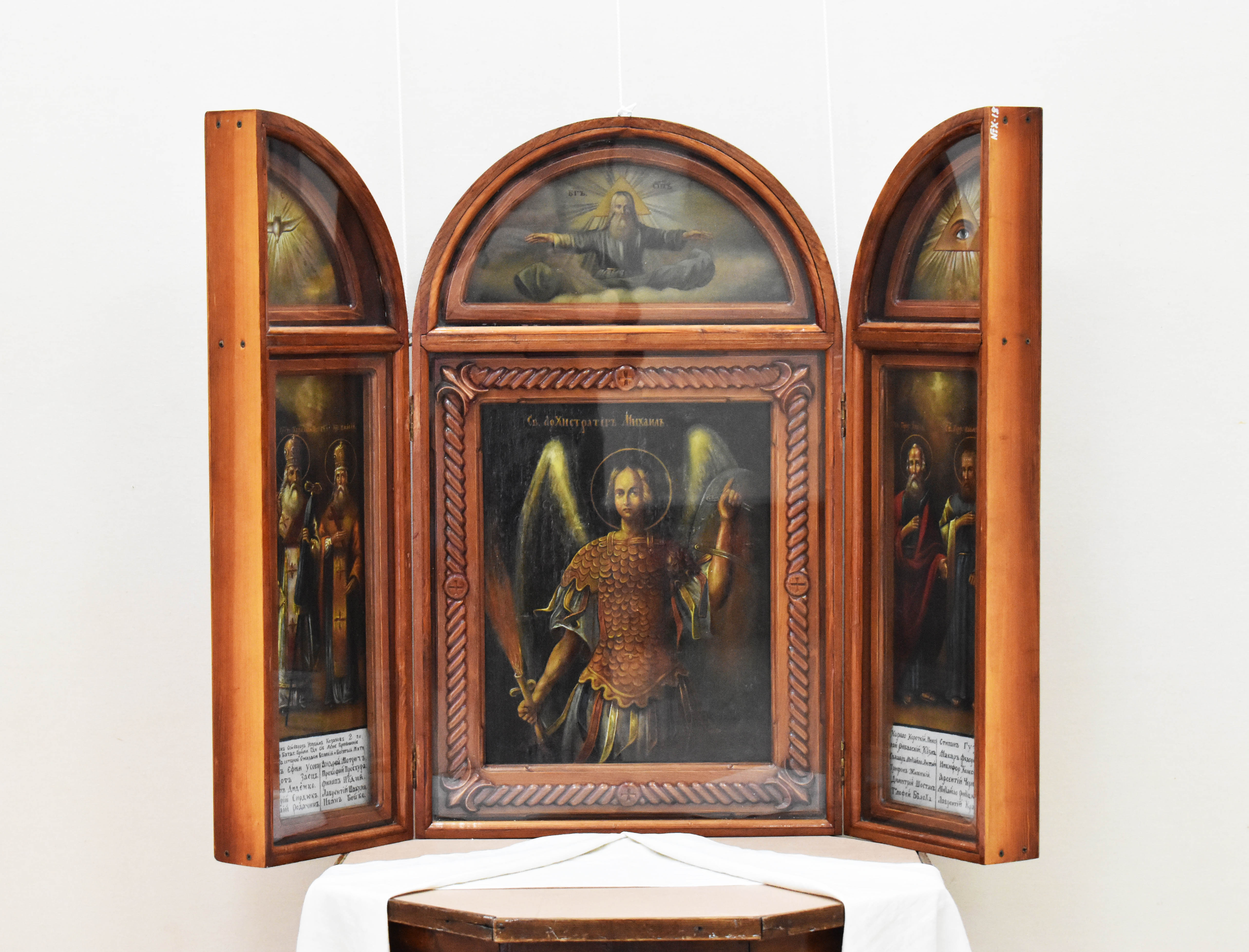 Среди них: икона Почаевской Божией Матери к. XIX века, написанная маслом на стекле; парные иконы в серебряных окладах «Мария Египетская» и «Вознесение Господне» Петербургской иконописной школы середины XIX века.