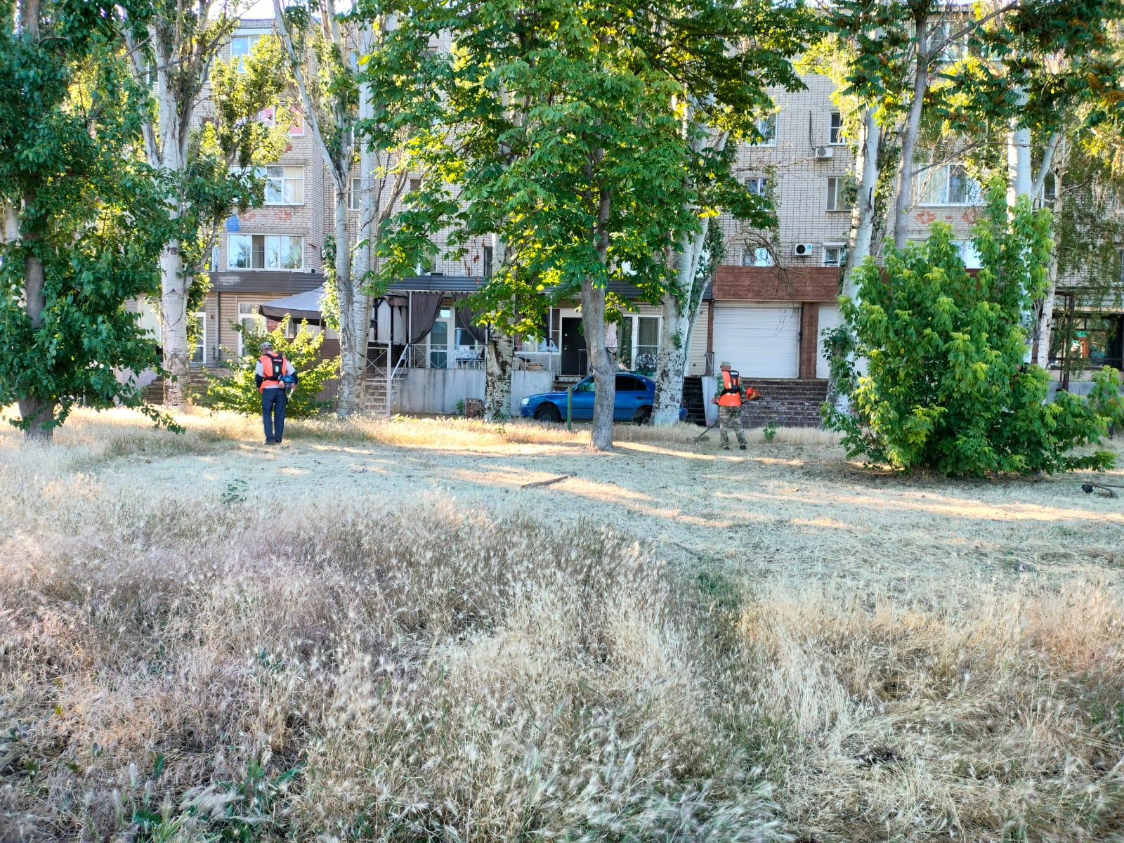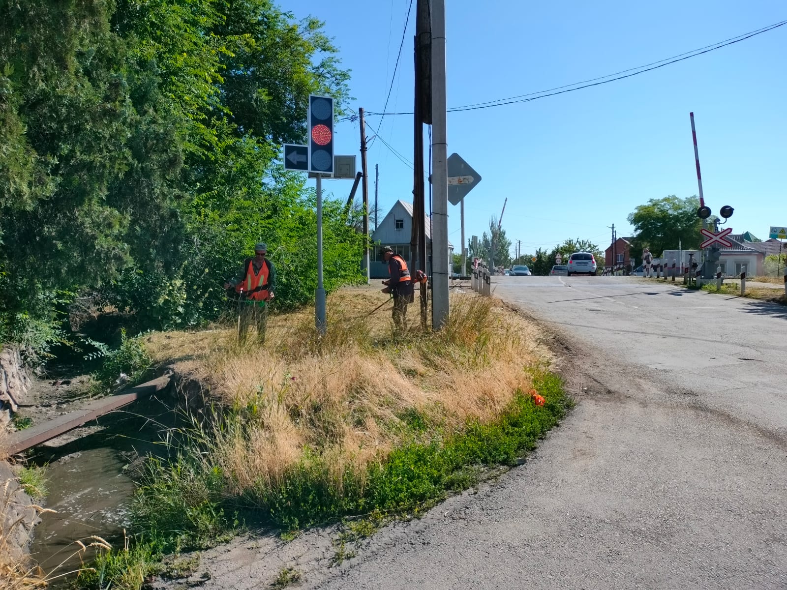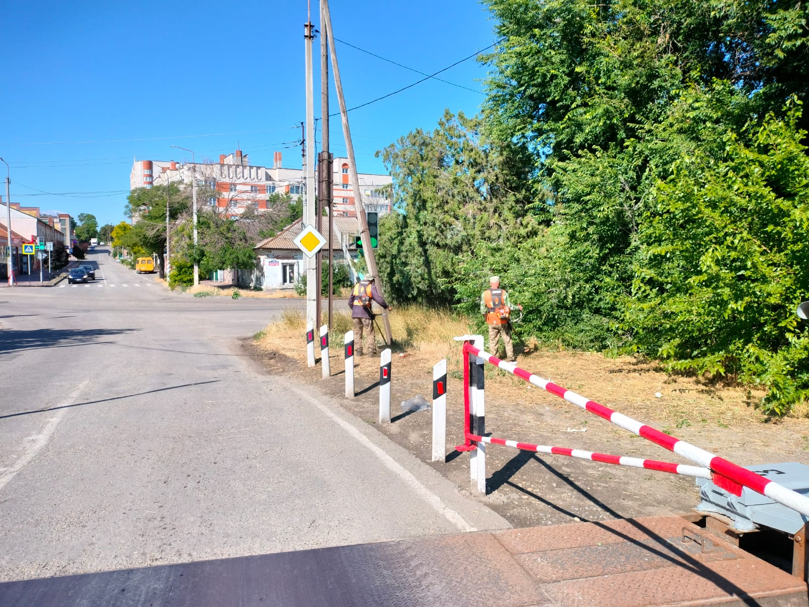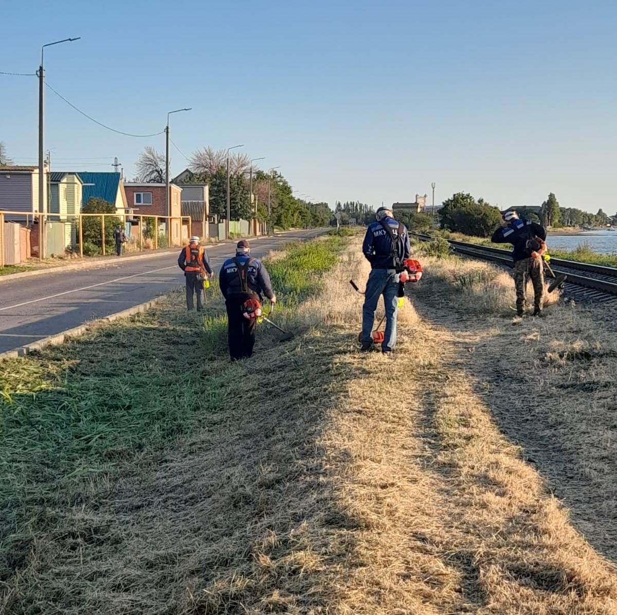 Борьбу с сорняками ведут и работники МБУ «ККБУ». Ранним утром они вышли с триммерами на ул. Нижнесадовую, днем ранее – на склон набережной.
