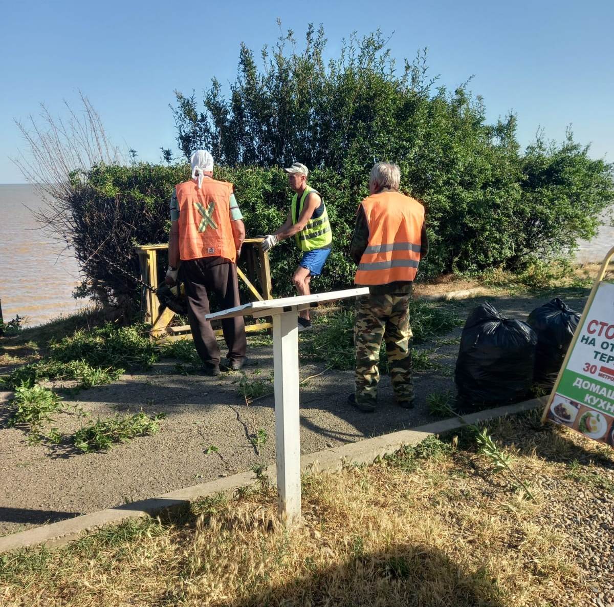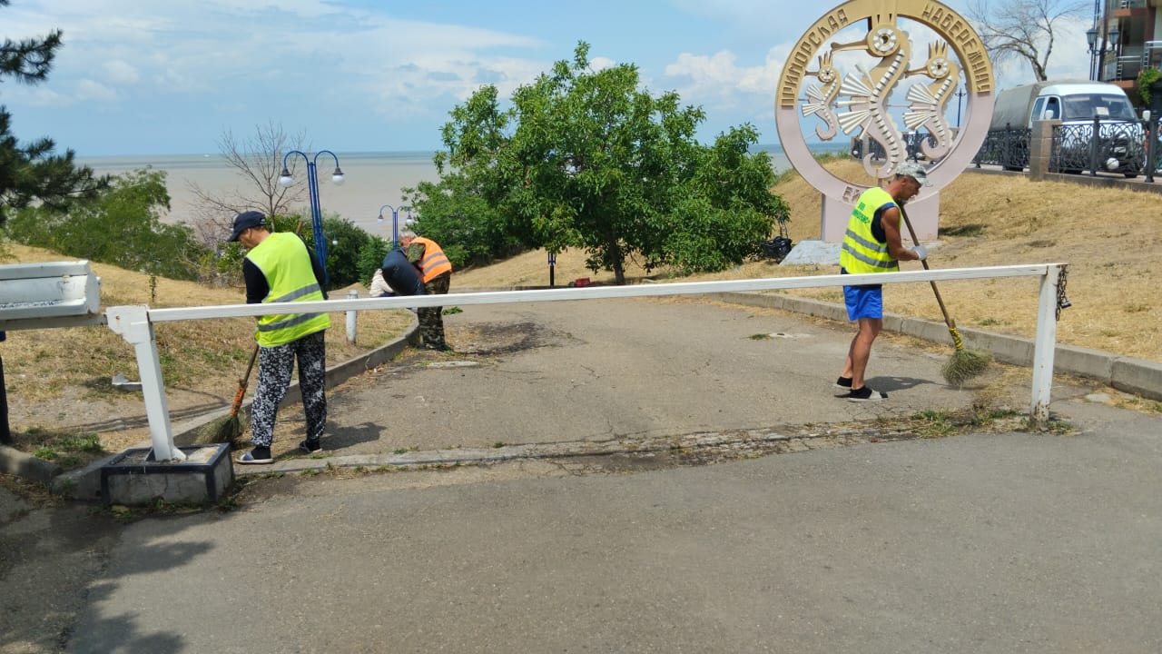 Так же утром работников ООО «Экотранс» можно было увидеть на детских площадках по ул. Плеханова, вдоль береговой полосы Ейского лимана, где они очищали территорию от накопившегося мусора.