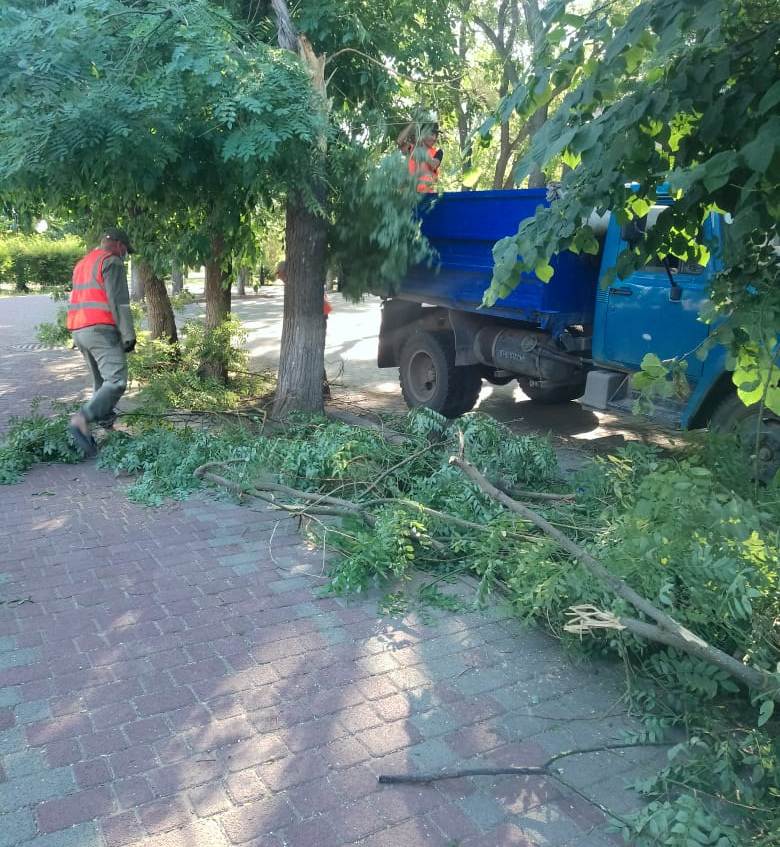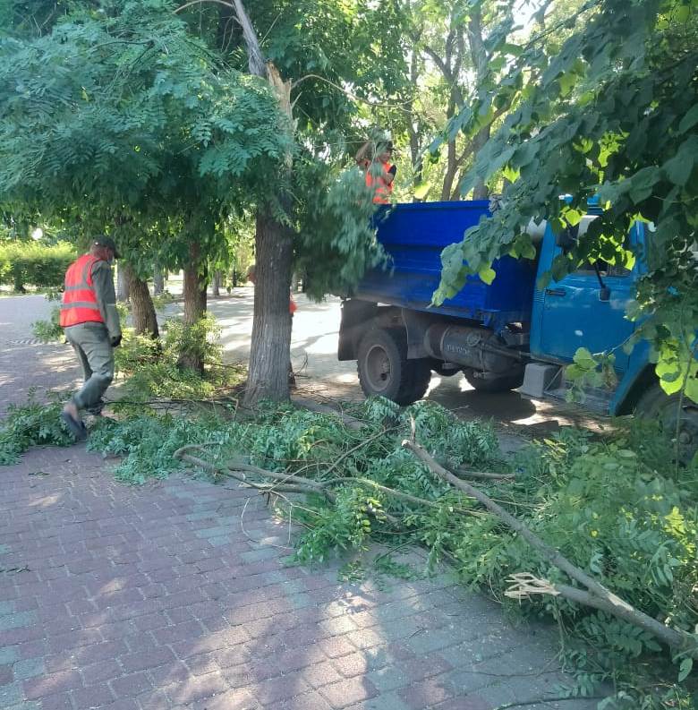 Их обломал сильный ветер, налетевший в понедельник на город. Последствия непогоды коммунальщики устраняли по ул. Свердлова, ул. Нижнесадовой, ул. Либкнехта, в Никольском парке. А на Приморской набережной они привели в порядок и подстригли кусты.