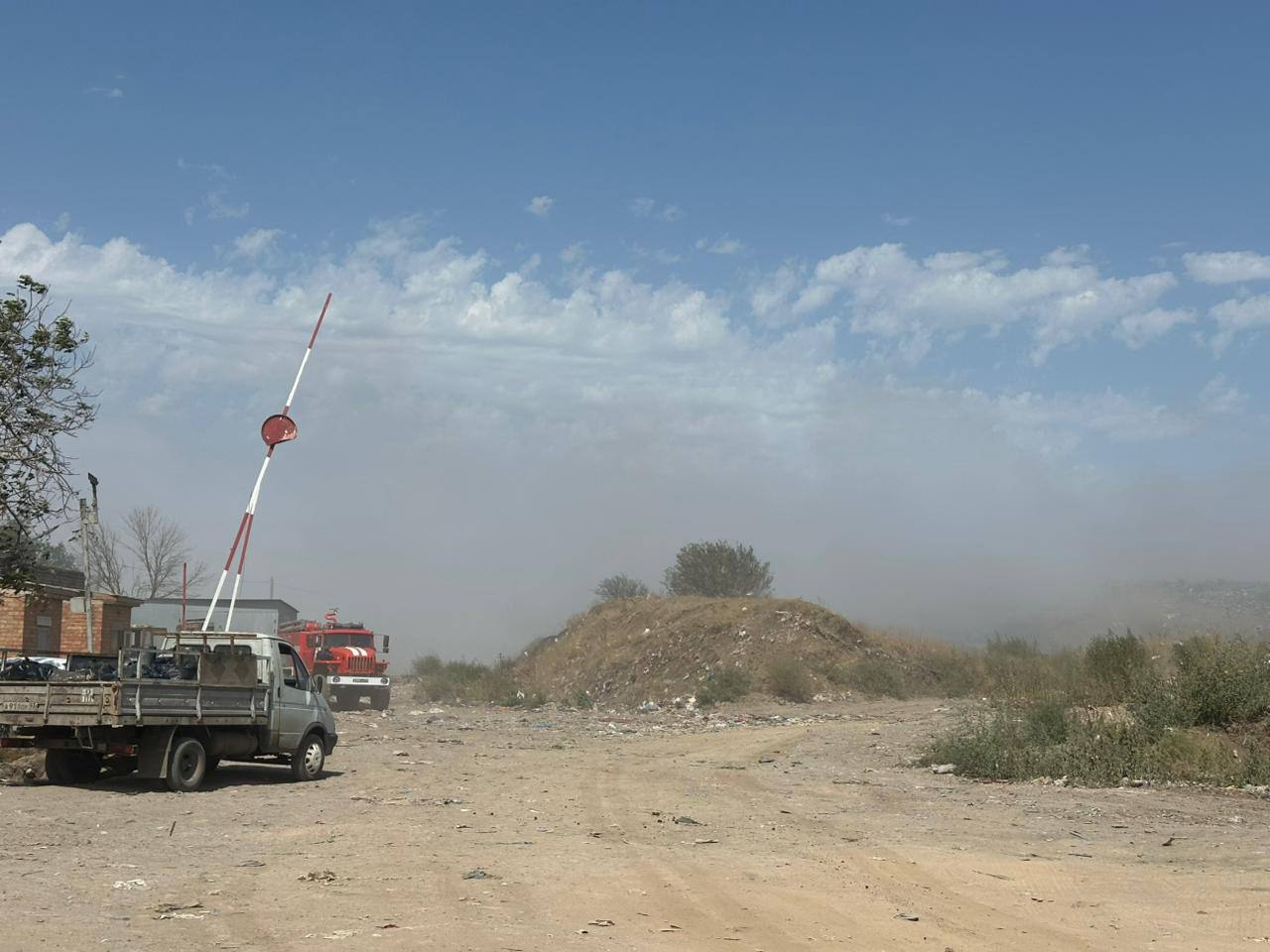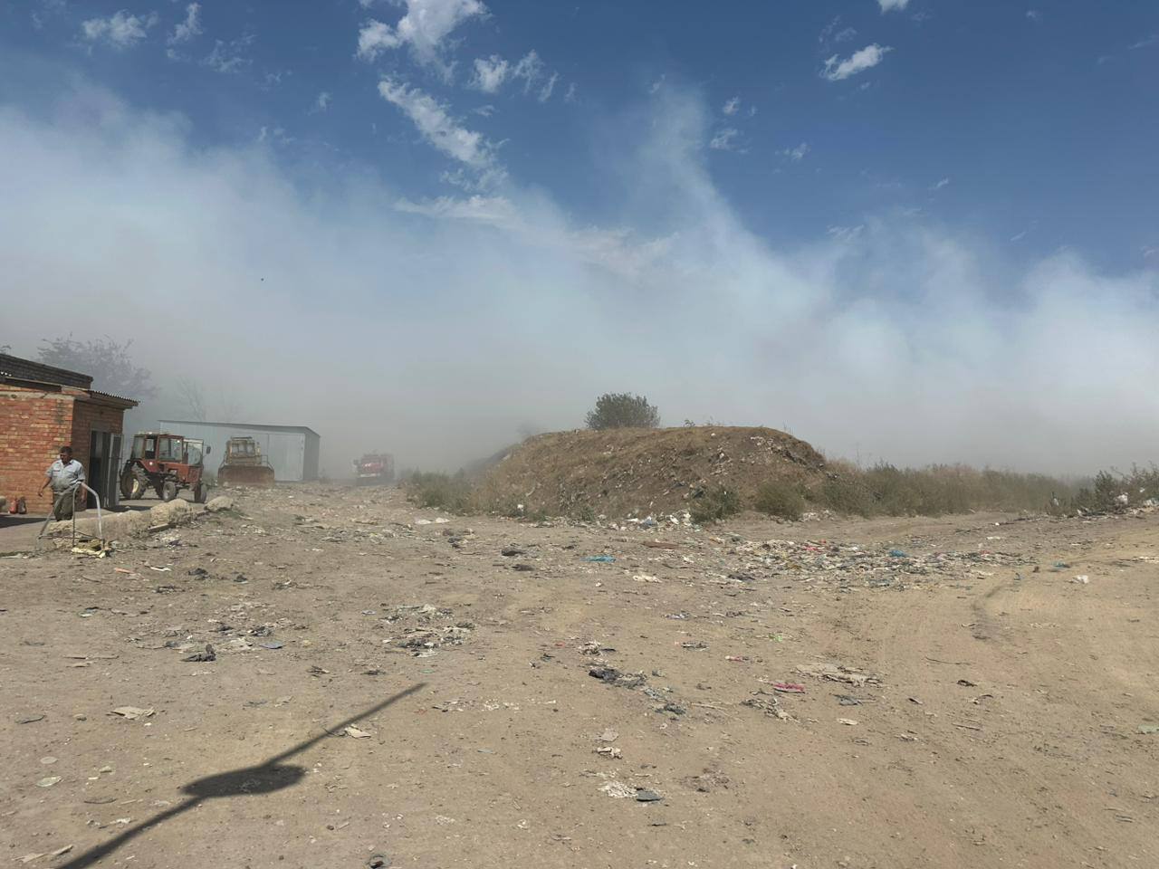 Усугубляет ситуацию сильный порывистый ветер. При 35 градусной жаре температура внутри свалки повышена и ветер мгновенно раздувает малейшие очаги самопроизвольного тления мусора.