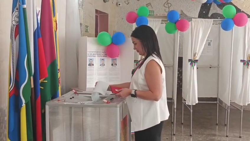 Заместитель директора школа № 9 с. Кухаривки Алина Гайворонская проголосовала на выборах губернатора Краснодарского края