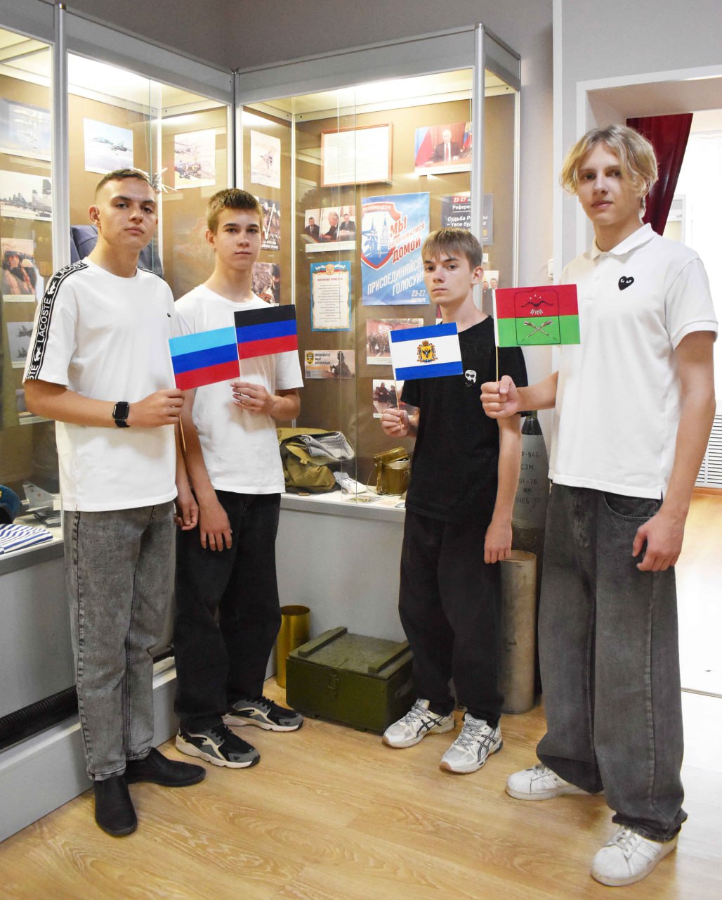 В преддверии этого знаменательного дня Музей истории города Ейска организовал для студентов Ейского полипрофильного колледжа экскурсию по выставке «Наши-СВОИ». Ребятам рассказали интересные факты из истории Донбасса и Новороссии, а также познакомили их с выставкой музея, посвященной ейчанам – участникам СВО. Молодые люди узнали о важности праздника и смогли ознакомиться с материалами, переданными Донецким республиканским краеведческим музеем.