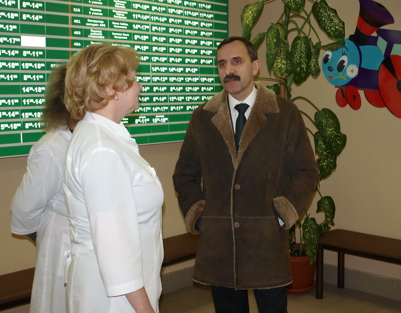 pressa_esk_dpol_res В минувшую пятницу рабочий день глава района начал с визита в первую детскую поликлинику. Михаил Тимофеев пришел пообщаться с медицинским персоналом и пациентами, посмотреть на работу поликлиники изнутри, услышать пожелания родителей. В холле, теплом и чистом, людей было немного: молодой папа с ребенком на руках, бабушка с внуком и несколько молодых мамочек. К ним и подошел глава. Он поинтересовался, как проходят врачебные приемы, нет ли претензий к медперсоналу. Претензий не было, единственное, что вызывает неудобство – отсутствие просторного теплого помещения, где в стужу можно оставлять коляски. А пожилой мужчина, который привел на прием внука, высказал пожелание, чтобы такие ремонты сделали и в других детских поликлиниках. Михаил Тимофеев ответил, что этот вопрос уже обсуждался и занесен в список дел, которые требуют решения в ближайшее время.