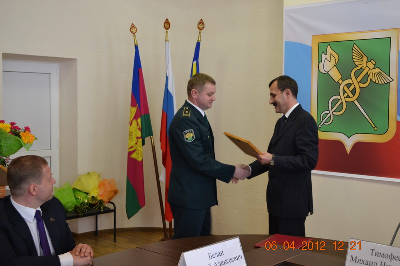 Сегодня поздравления с 20-летием со дня образования от главы района Михаила Тимофеева принимал личный состав Ейского таможенного поста. В первый год работы его штатная численность составляла 7 человек. Сегодня это один из самых многочисленных коллективов в Краснодарской таможне. Основным направлением работы поста является оформление товаров, перемещаемых через границу Российской Федерации морским, железнодорожным и автомобильным транспортом. Почти 96% грузов приходится на экспортные операции. Количество грузов, переваливаемых через пункт пропуска «Ейский морской порт» ежегодно увеличивается в среднем на 7-10%. С гордостью говорил о коллективе в своем выступлении на торжественном собрании руководитель поста полковник Вадим Павлович Корниенко. Не случайно Ейский таможенный пост является одним из лучших в Краснодарской таможне. Его работу отличает высокий профессионализм и ответственность. Глава района пожелал коллективу здоровья, дальнейших успехов в службе на благо родной Кубани.