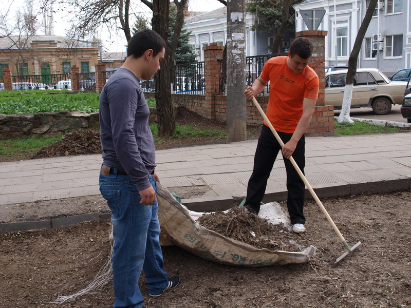 Продолжается месячник по благоустройству и наведению санитарного порядка. Сегодня за метлы и грабли взялись студенты и преподаватели колледжа «Ейский». Чуть ранее они уже успели убрать несколько городских улиц, а сегодня их фронтом работы стали Никольский парк и лесополоса вдоль нового кладбища, где с раннего утра началась побелка деревьев. Колледж, кстати, постоянный участник «генеральной уборки». В прошлом году ребята наводили чистоту на привокзальной площади и побережье Таганрогского залива. В этом на их счету – более 8 тонн вывезенного мусора.