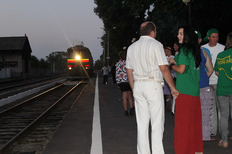 Встретить первых пассажиров из столицы традиционно прибыли представители власти. Выходя из вагона, приехавшие на отдых гости города были приятно удивлены. Ведь каждый из них получил в качестве подарка билеты на аттракцион «Колесо обозрения, расположенный в парке имени И. Поддубного. Особенно этому радовались дети, приехавшие провести летние каникулы на Азовском побережье.