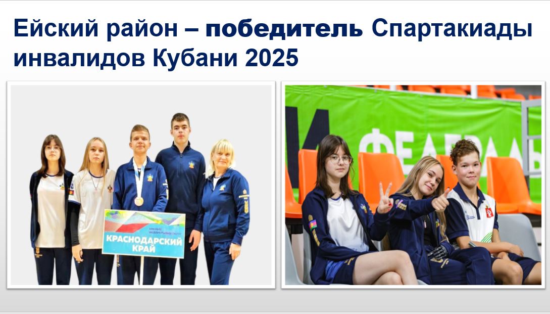 Было отмечено, что Ейский район в 2025 году в Спартакиаде инвалидов Кубани занял 1 место в командном зачете.