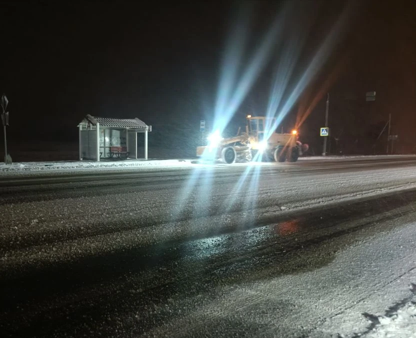 На маршрутах работает 6 комбинированных дорожных машин. В светлое время суток для расчистки снега дополнительно задействованы 3 грейдера и 2 трактора с отвалом. 2 бригады рабочих занимаются очисткой и обработкой остановочных павильонов песко-соляной смесью.