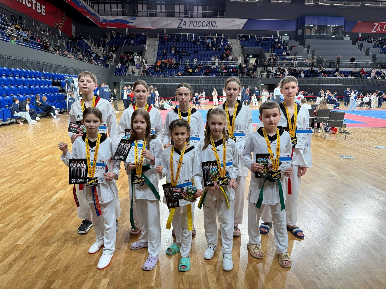 На третью ступень пьедестала поднялись Владислав Горяинов, Ксения Мацола, Нина Дмитриева и Ксения Плахотняя.