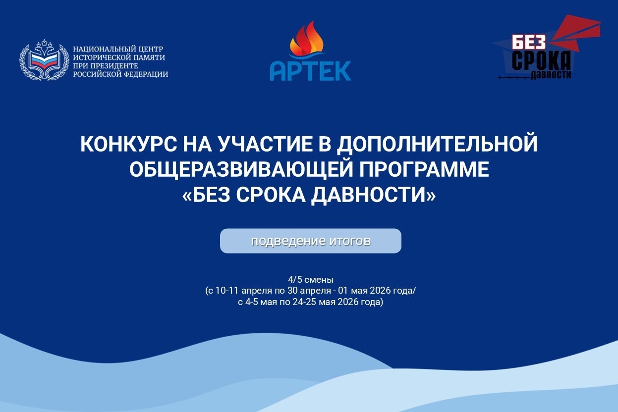 Со 2 февраля по 10 марта Национальный центр исторической памяти при президенте Российской Федерации проводил Конкурс на участие в дополнительной общеразвивающей программе «Без срока давности» в 4-й и 5-й сменах Международного детского центра «Артек».