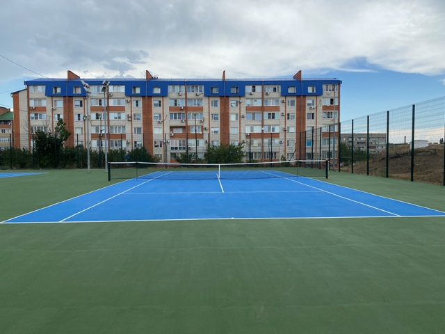 Другая площадка предназначена для игры в большой теннис. Теннисные корты имеют высокое ограждение, резиновое основание, сетку, по периметру установлено освещение и камеры видеонаблюдения. Так же установлен режим работы спортивного объекта под открытым небом, что позволит обеспечить ее сохранность.