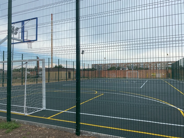 Первым объектом стала многофункциональная спортивная площадка. Сегодня эта территория имеет новые ограждение и покрытие, выполненное из мелкой крошки, установлен современный спортивный инвентарь - баскетбольные кольца, футбольные ворота, стойки для установки волейбольной сетки, а также нанесена разметка. Начальник отдела спорта администрации Ейского района Роман Должиков в ходе осмотра рассказал с какими проблемами пришлось столкнуться, что пришлось менять, чтобы сегодня этот «островок спорта» приобрел такой современный и функциональный вид.