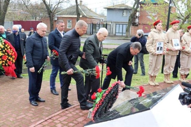 Минутой молчания собравшиеся почтили память тех, кого сегодня уже нет рядом с нами и возложили живые цветы к Памятному знаку.